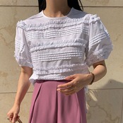 サマーラウンドネックプリーツスリーブシャツ トップス レディース 夏物 Oネック ステッチ 7/20 mi4663281999506