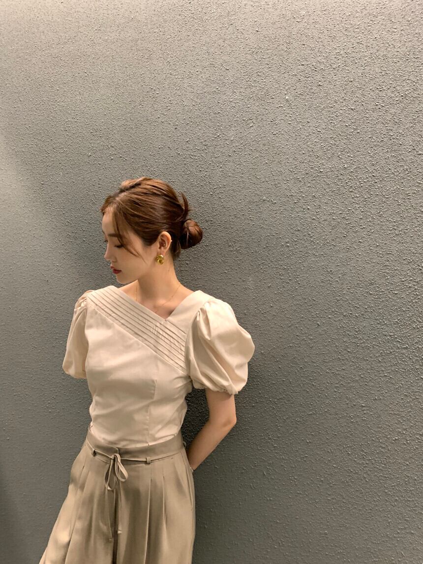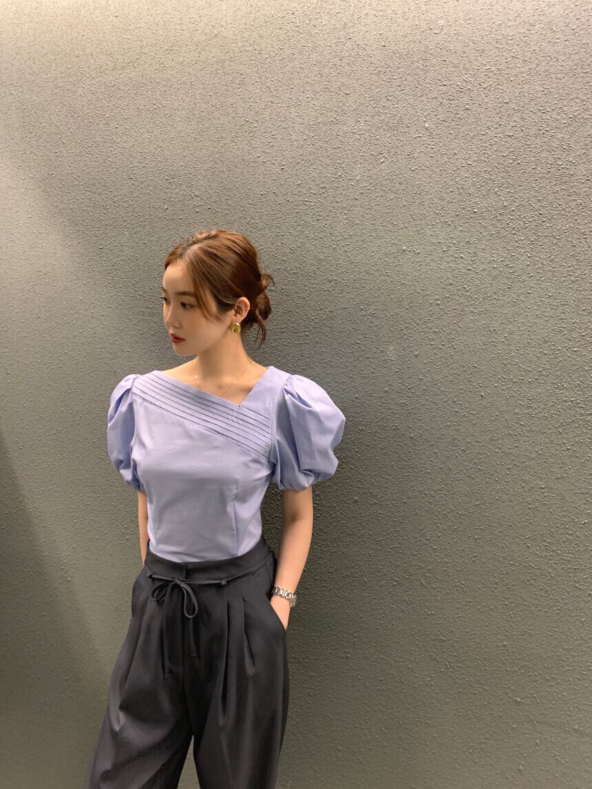 サマーカラープリーツウェストスリムスリーブシャツ トップス 夏物 7/20 mi4623435627116