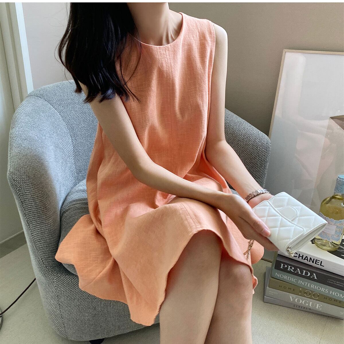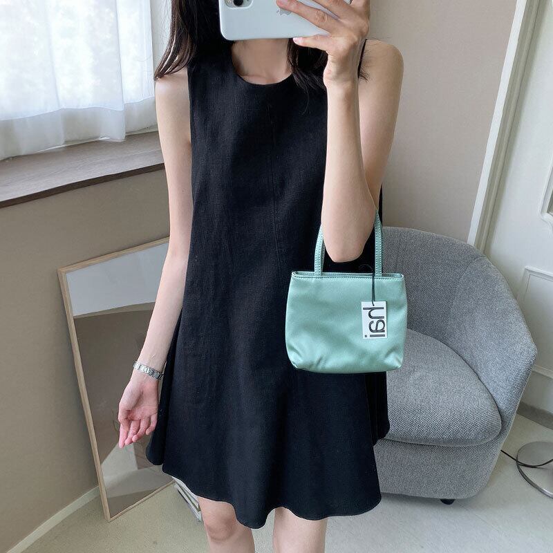 サマーラウンドネックルーズカジュアルソリッド カラーノースリーブドレス ショートスカート 夏物 Oネック ソリッドカラー 7/20 mi4648414932019