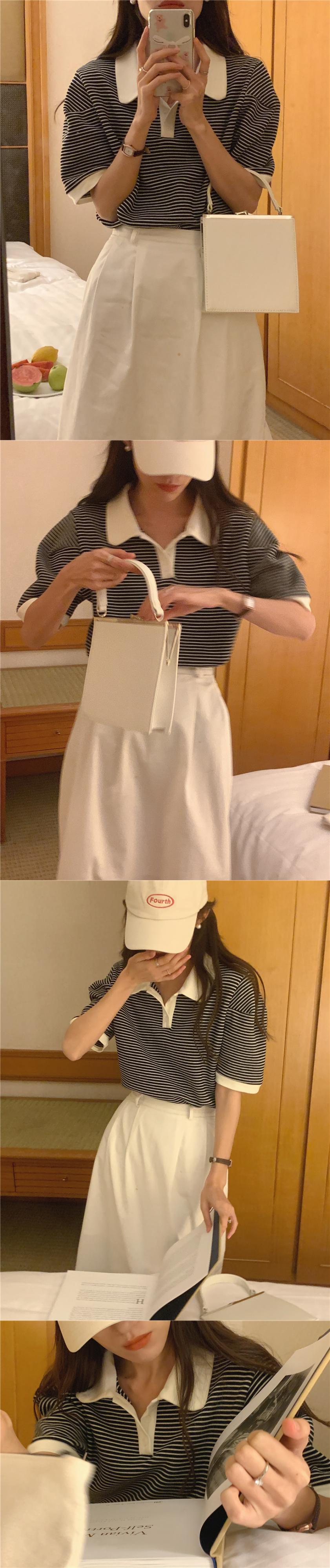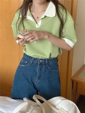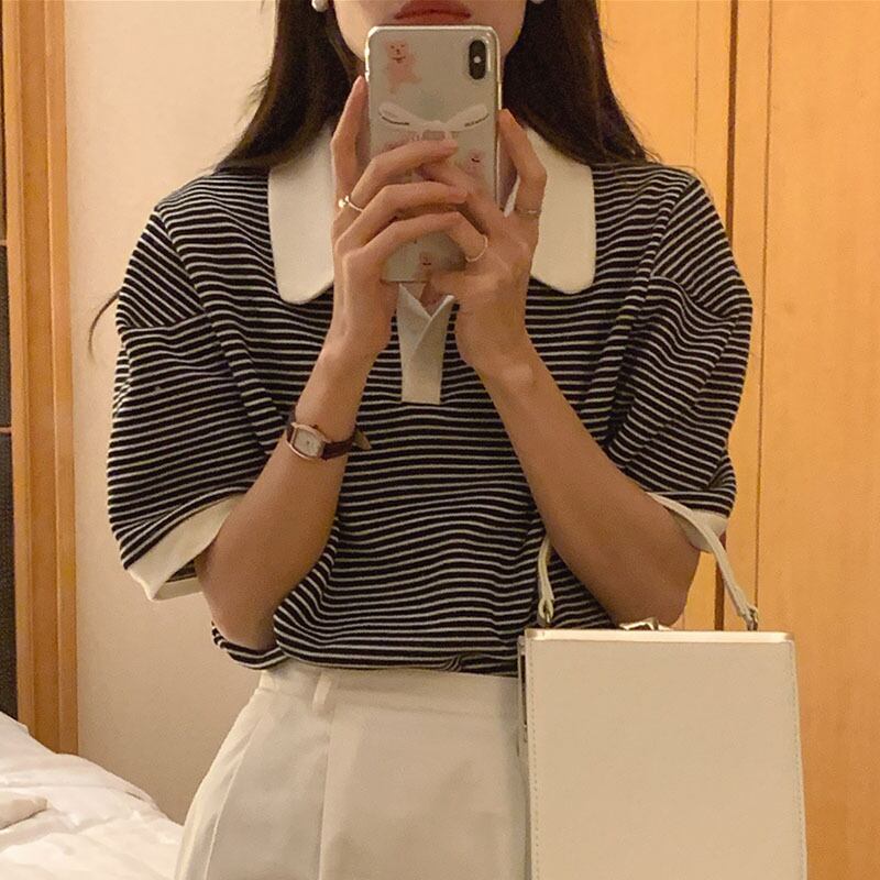サマーカラールーズカジュアルストライププルオーバー Tシャツ レディース 夏物 7/20 mi4625453146864