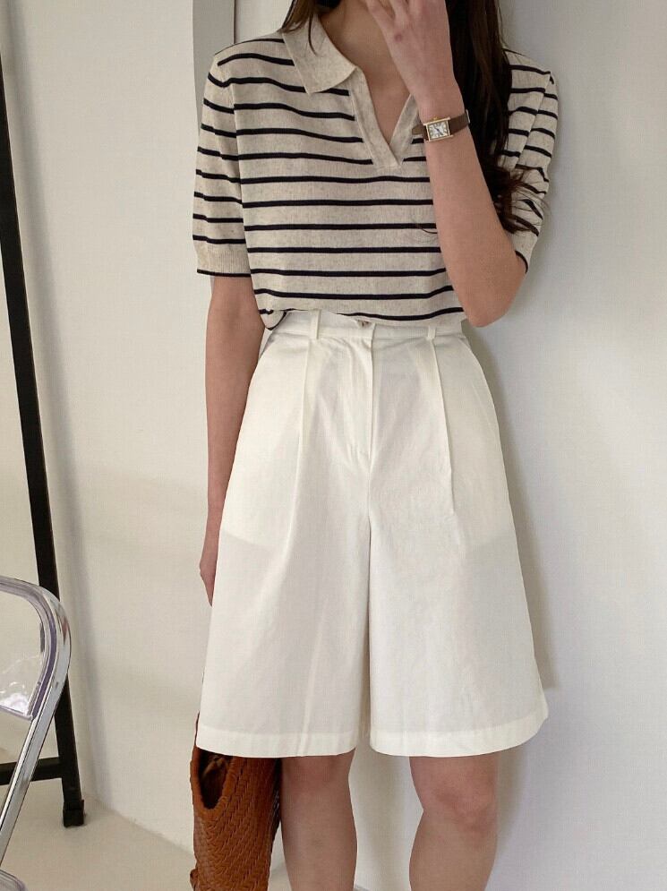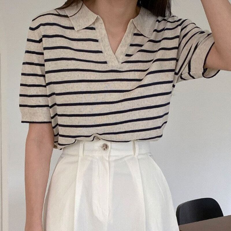 サマーカラールーズカジュアルストライプニットセーター トップス レディース 夏物 7/20 mi4675638079848