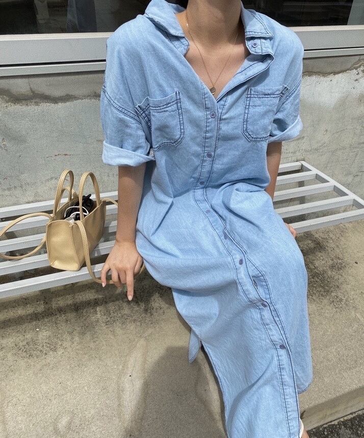 サマースタンダードラインサイドスリットシャツ ドレス レディース レトロ 夏物 7/20 mi4678166465697
