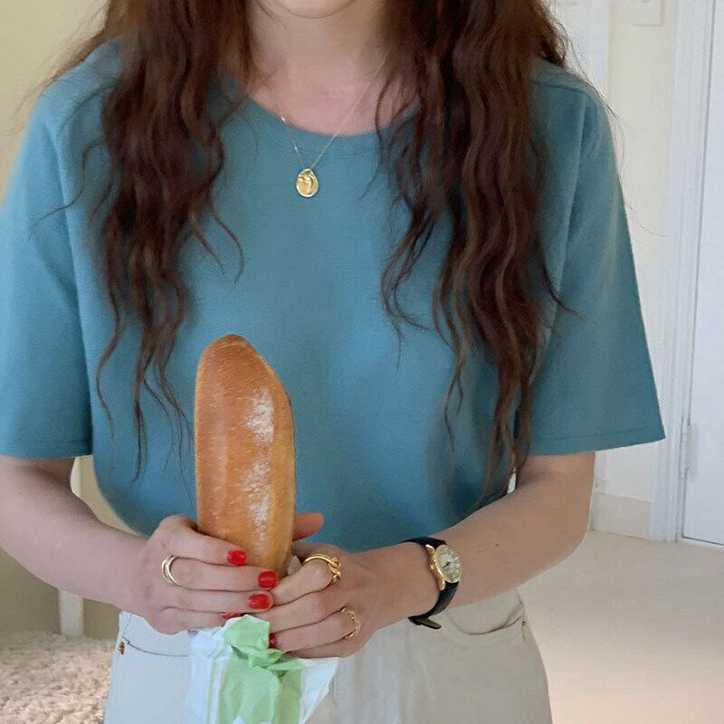 ソリッド カラープルオーバー セーター サマールーズカジュアルTシャツ トップス 夏物 ソリッドカラー 7/20 mi4668366766319