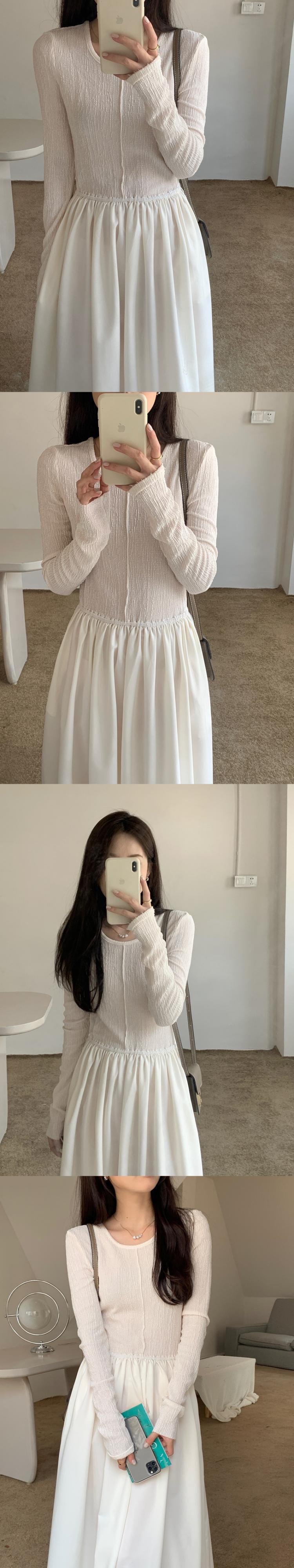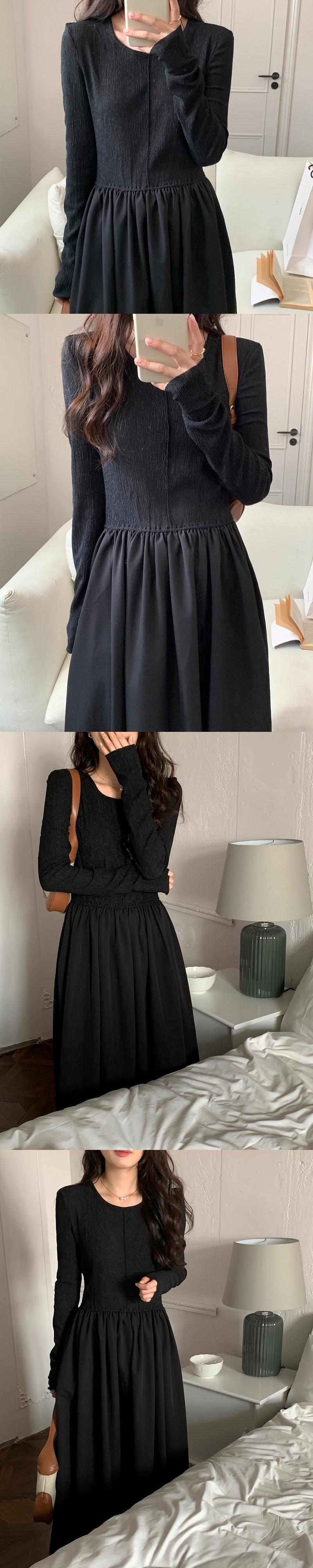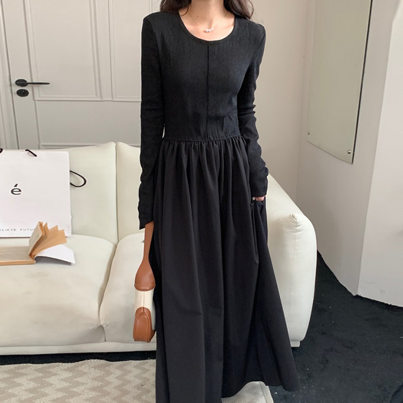 オータムラウンドネックスリムドレス ロング 秋物 Oネック 7/20 mi4686611346077