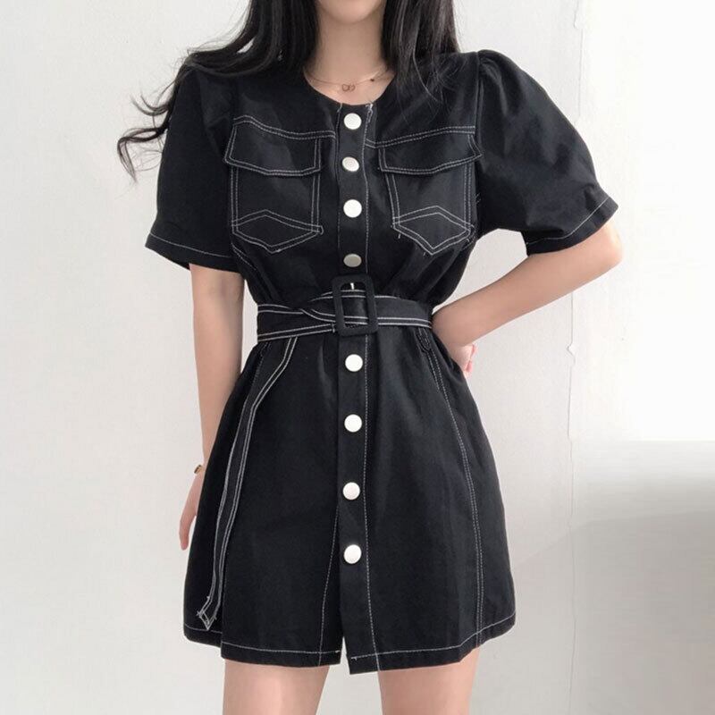スタンダードラウンドネックラインバンドウェストスリーブドレス レディース レトロ Oネック 7/20 mi4617049768430