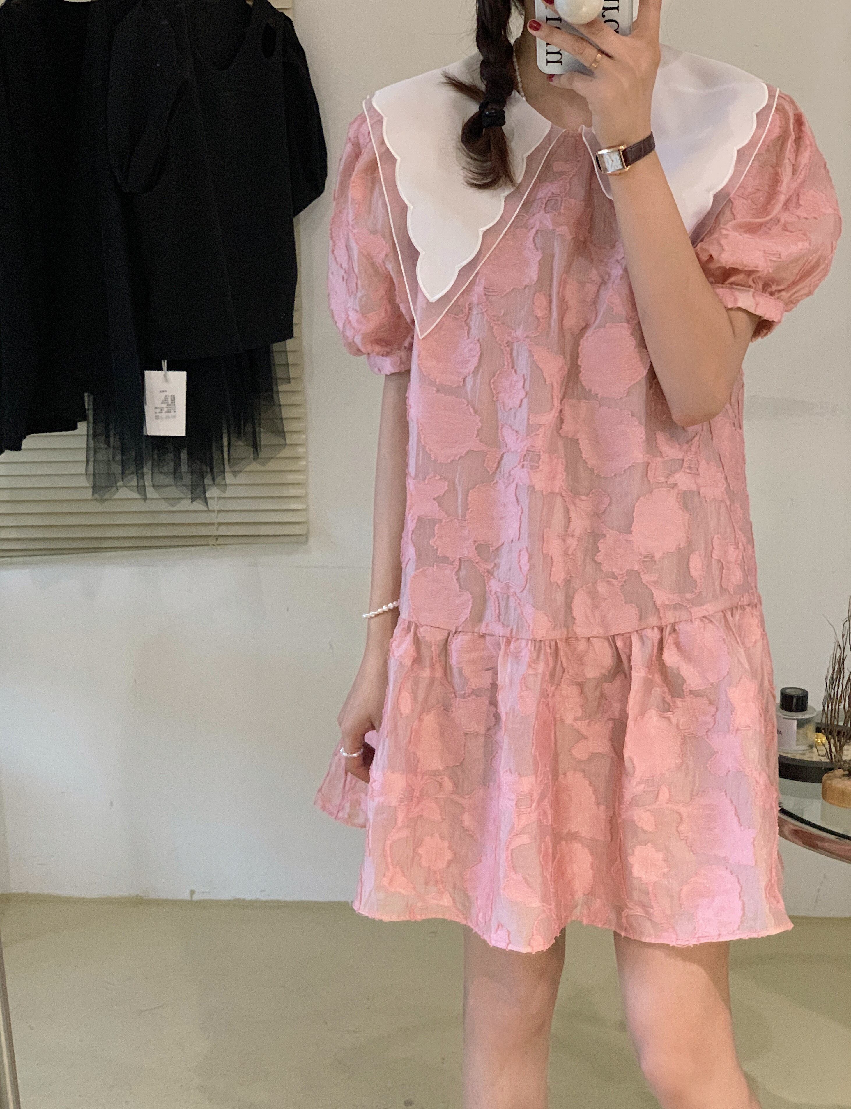 サマールーズスリーブラッフルドレス 大人ガーリー スウィート キュート カジュアル 夏物 ステッチ 7/20 mi4670401003927