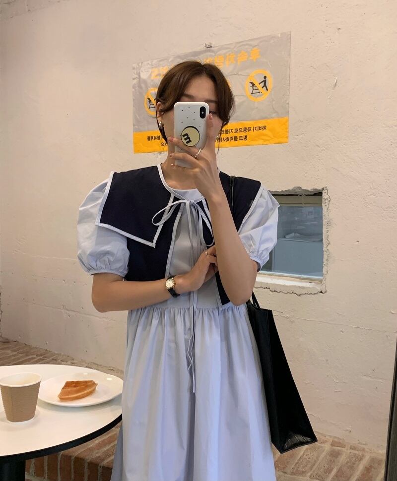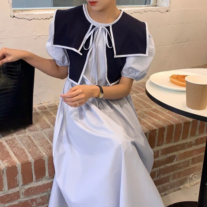 サマースタイルネイビーカラーレースルーズドレス レディース 夏物 7/20 mi4692854978633