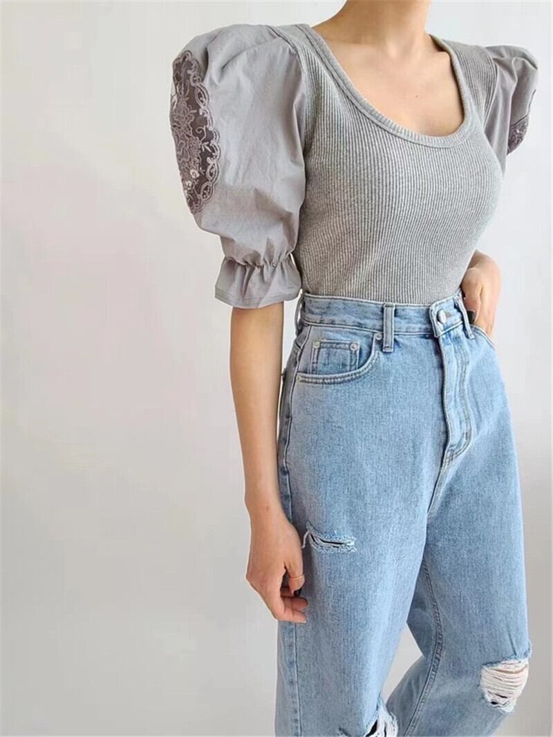 サマーニットルーズスリーブシャツ レディース 夏物 ステッチ 7/20 mi4650499742468