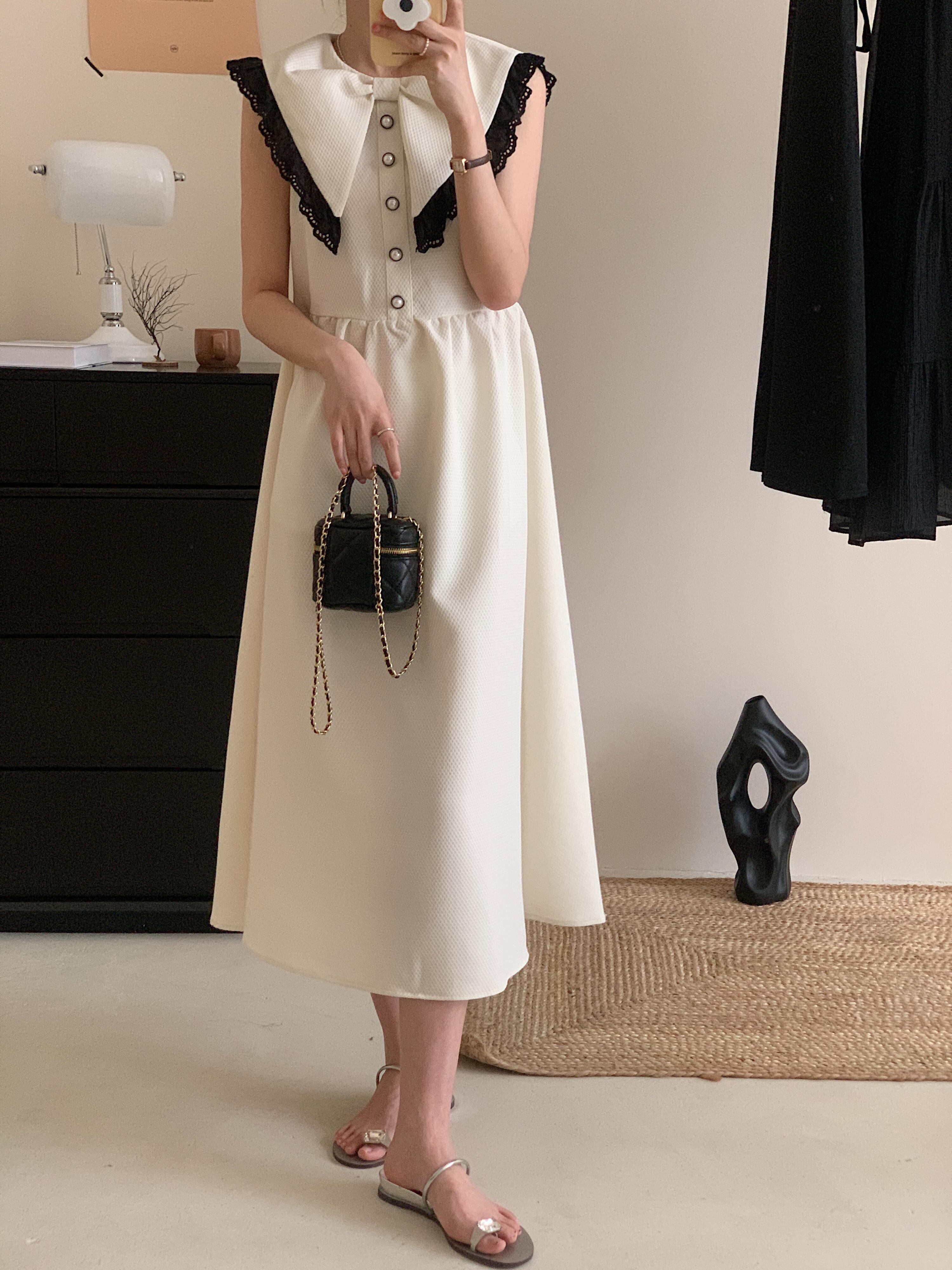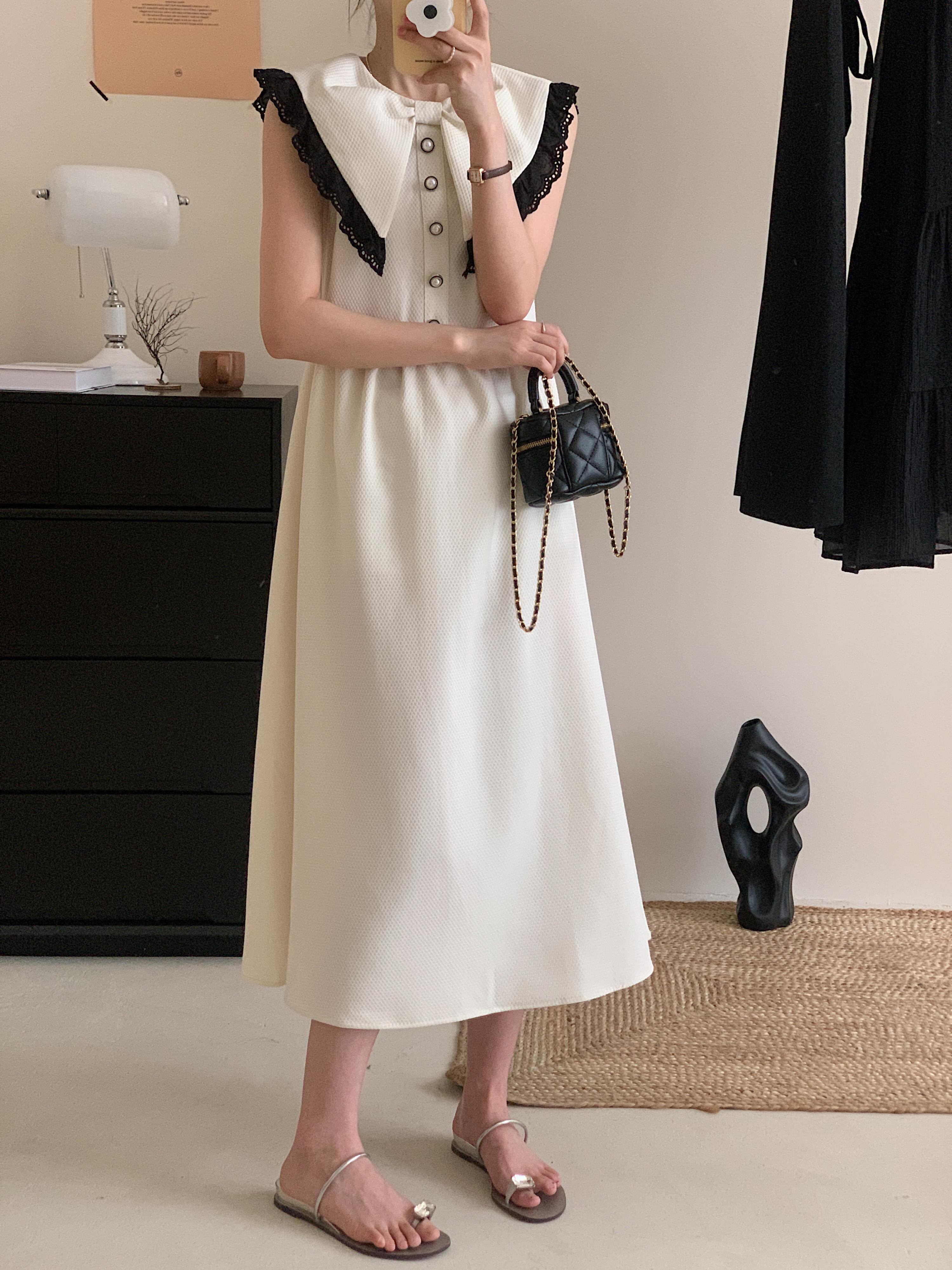 サマーリボンレースノースリーブドレス レッド 夏物 ステッチ 7/20 mi4646100655812