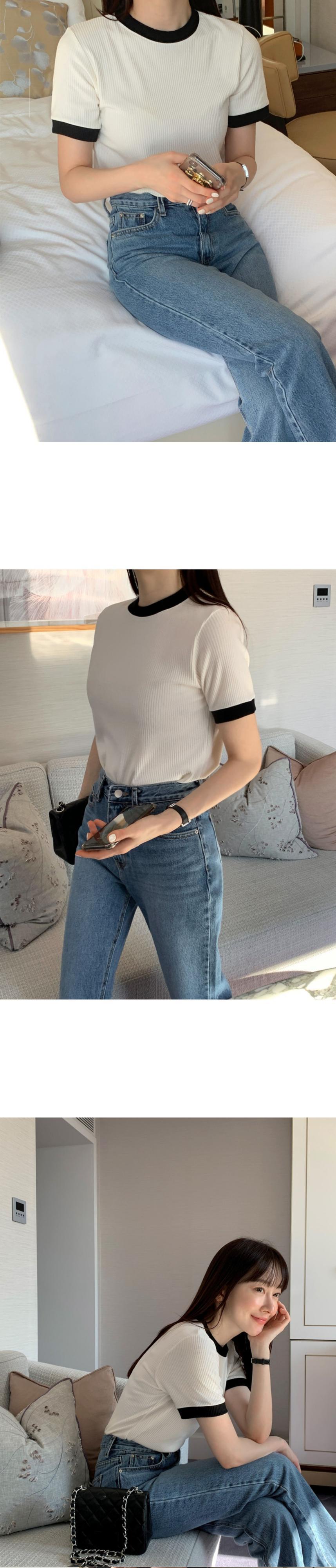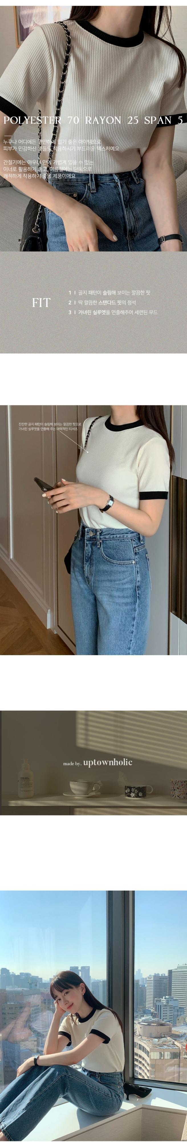 スプリングスタンダードラウンドネックカラールーズニットTシャツ レトロ 春物 Oネック ステッチ 7/20 mi4664701683837