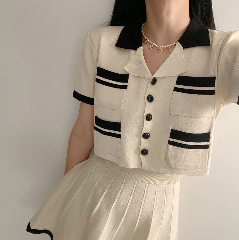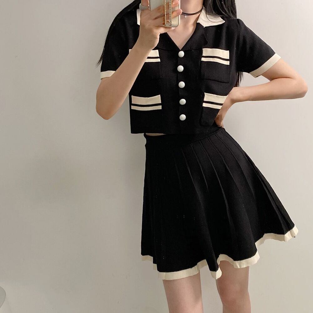 サマーカラーセーター ハイウェストウェストプリーツAラインスカート レディース 夏物 ポケット多め マルチポケット 7/20 mi4676138852536