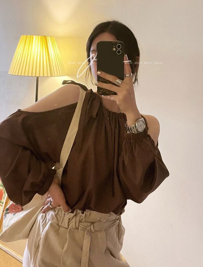オータムスタンダードレースラウンドネックストラップレスルーズカジュアルシャツ トップス レディース ロング レトロ 秋物 Oネック 7/20 mi4610221073500