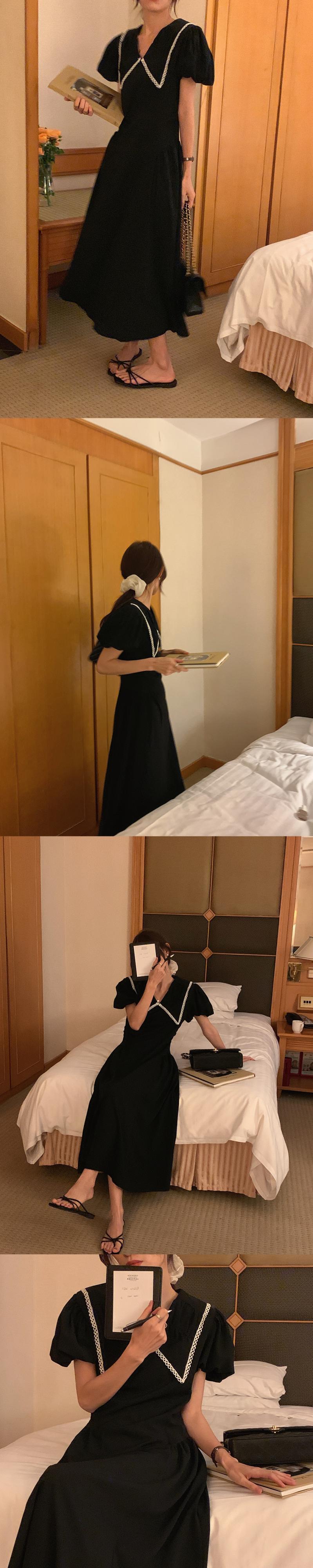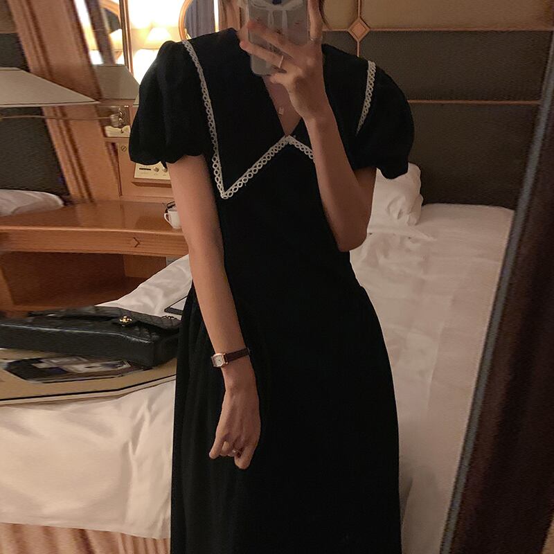 サマースタンダードレースウェストスリムスリーブドレス レトロ 夏物 ステッチ 7/20 mi4638721933256