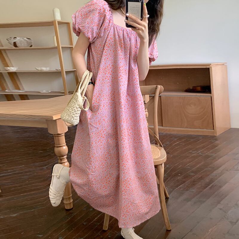 カラールーズフローラルドレス ロングスカート レディース 大人ガーリー スウィート キュート カジュアル 花柄 スクウェア 7/20 mi4661468917592