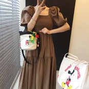 サマーカラーウェストスリムスリーブドレス ロングスカート レディース エレガント 夏物 スクウェア 7/20 mi4658773060628