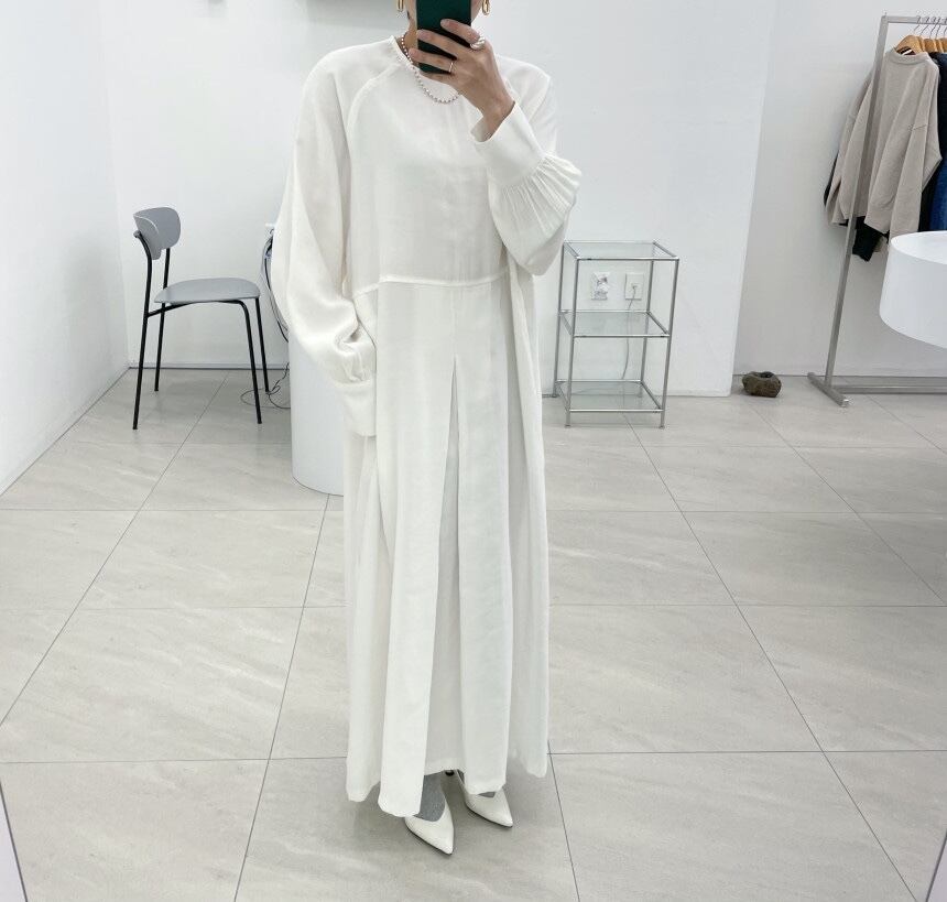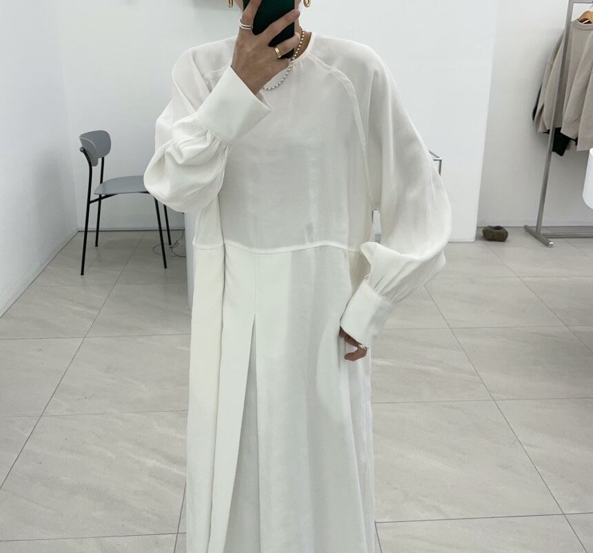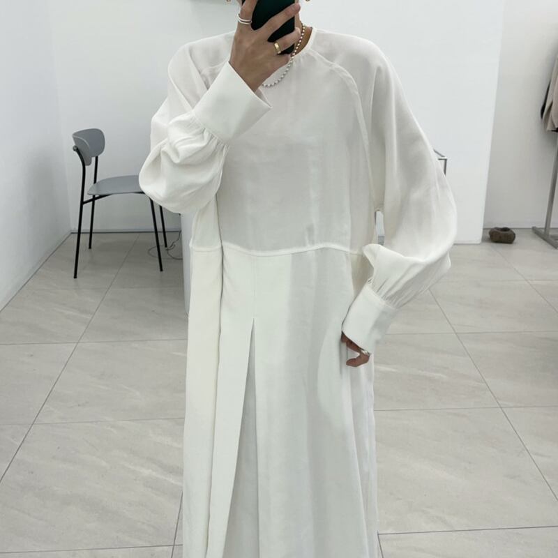 ミニマリストラウンドネックプリーツウェストルーズドレス レディース ランタンスリーブ Oネック 7/20 mi4687442528487