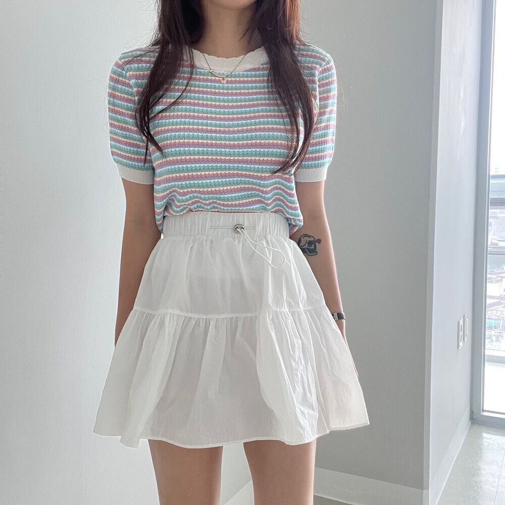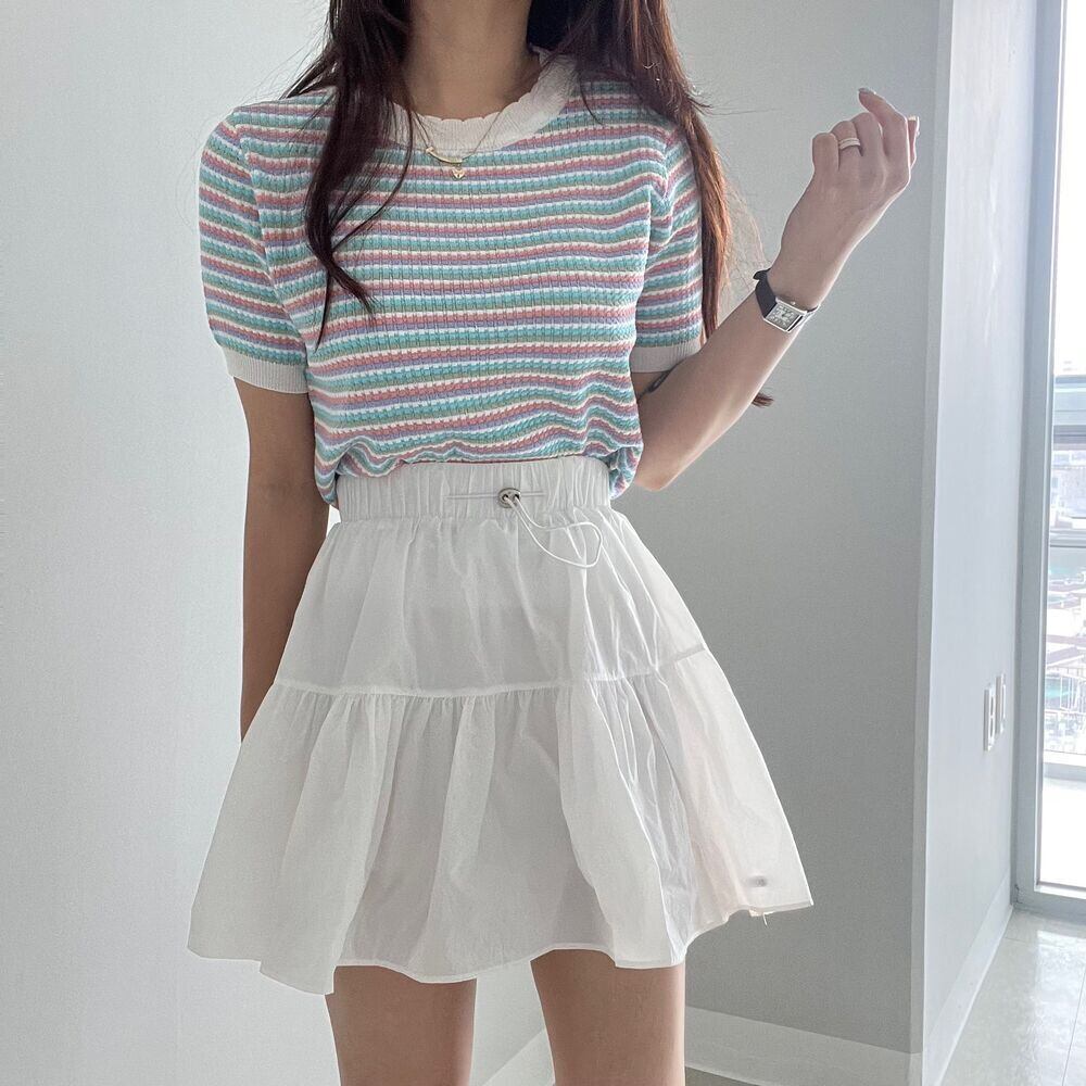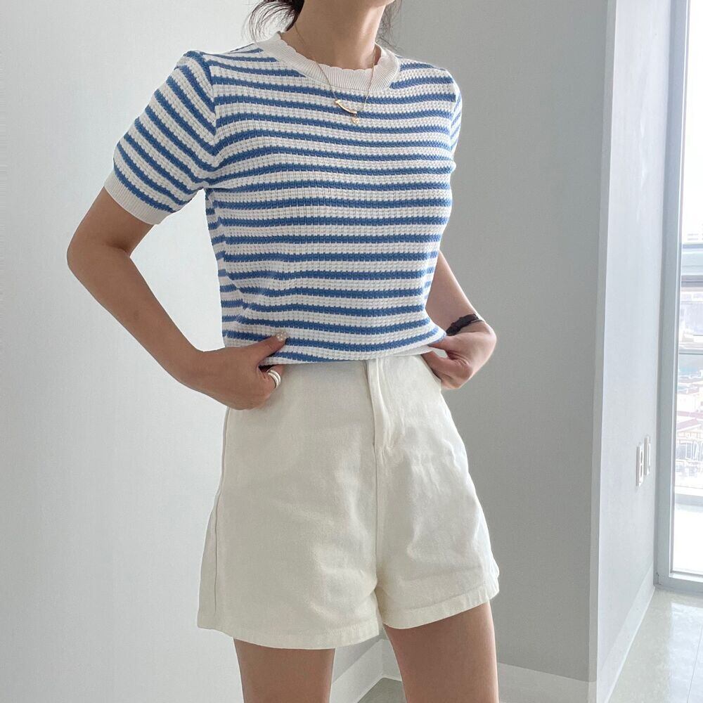 サマーラウンドネックストライプジャカードプルオーバー セーター Tシャツ 夏物 Oネック 7/20 mi4635719758299