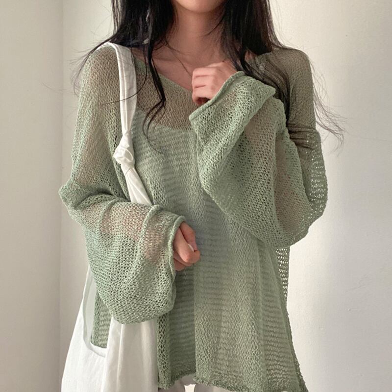 サマーラウンドネックルーズ薄手セーター レディース ロング 夏物 Oネック 7/20 mi4665439227815