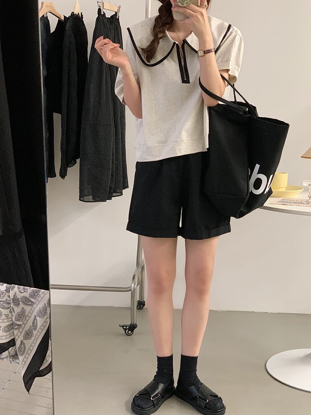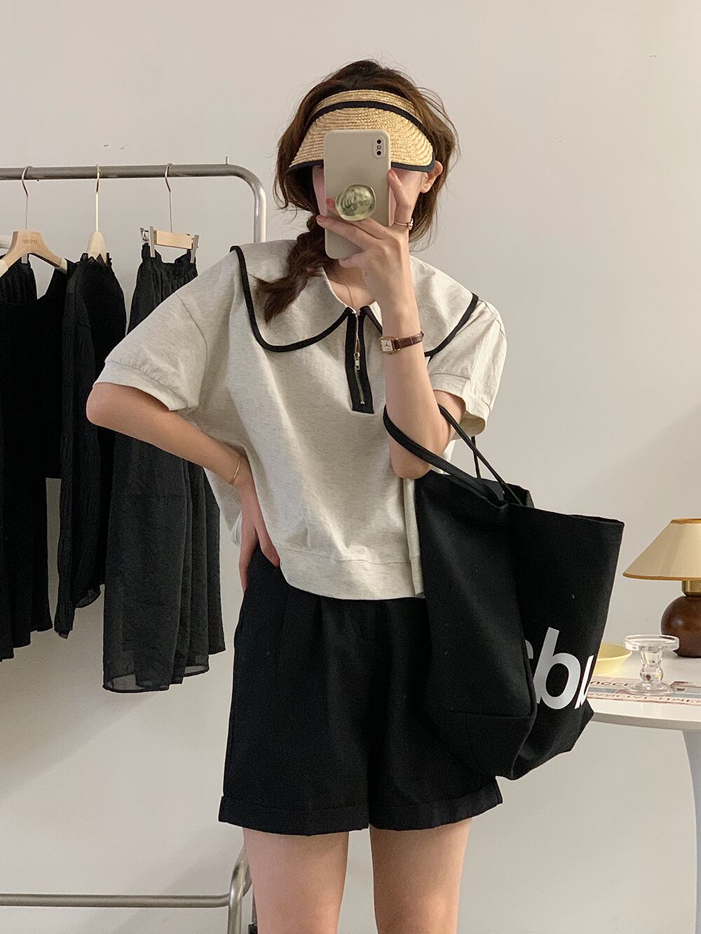 サマースタンダードカラージッパーシャツ ルーズカジュアルTシャツ レディース レトロ 夏物 7/20 mi4625418967928