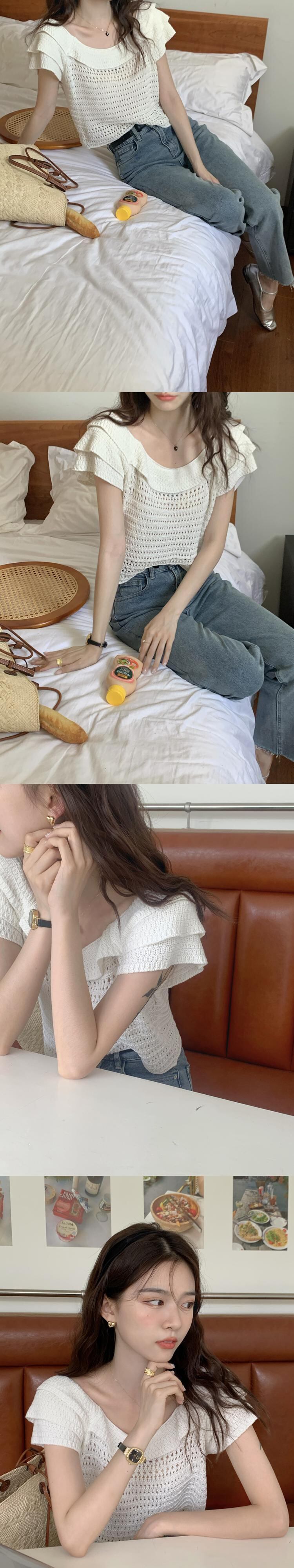 サマーカラールーズジャカードセーター レディース 夏物 スクウェア ステッチ 7/20 mi4639054199325