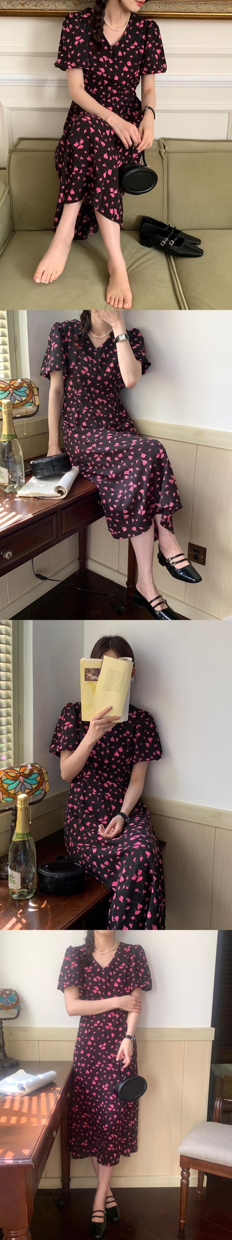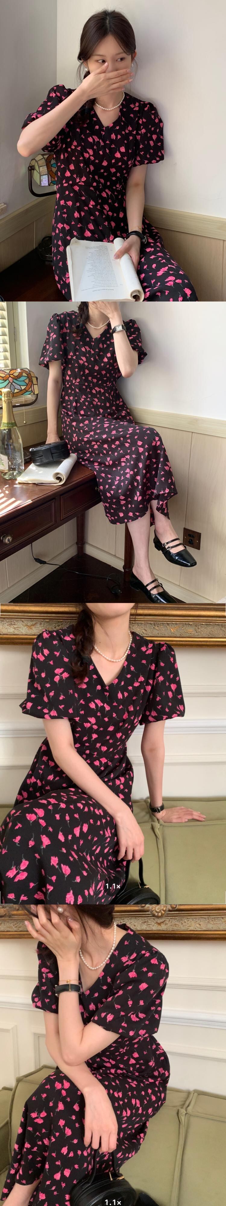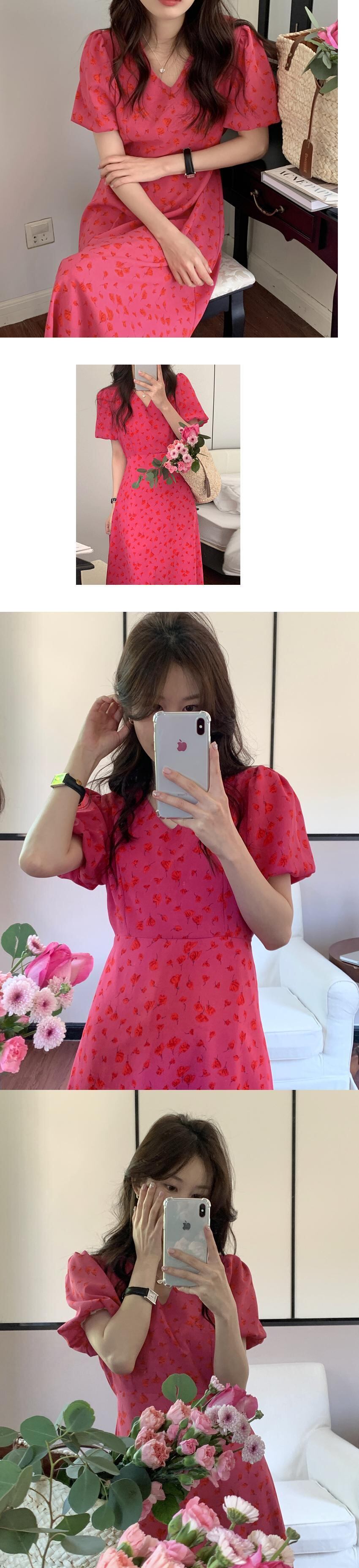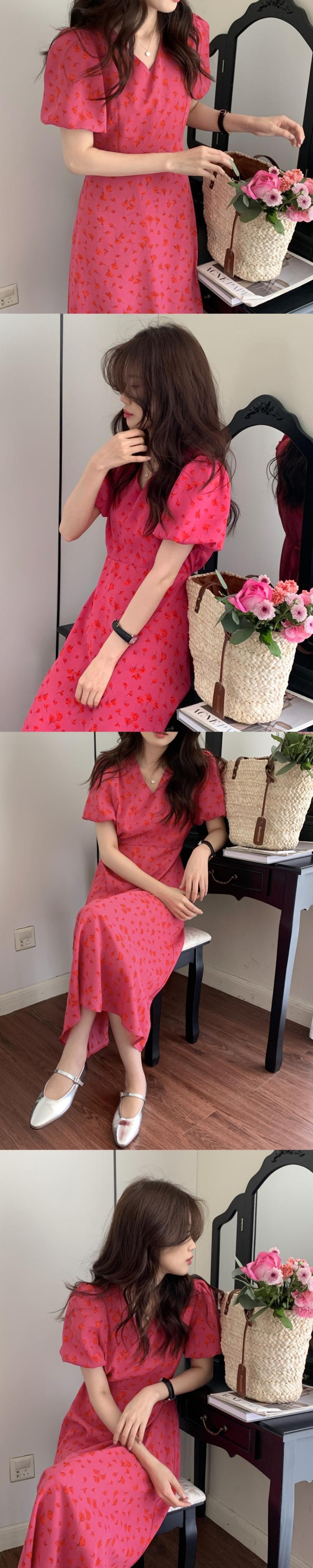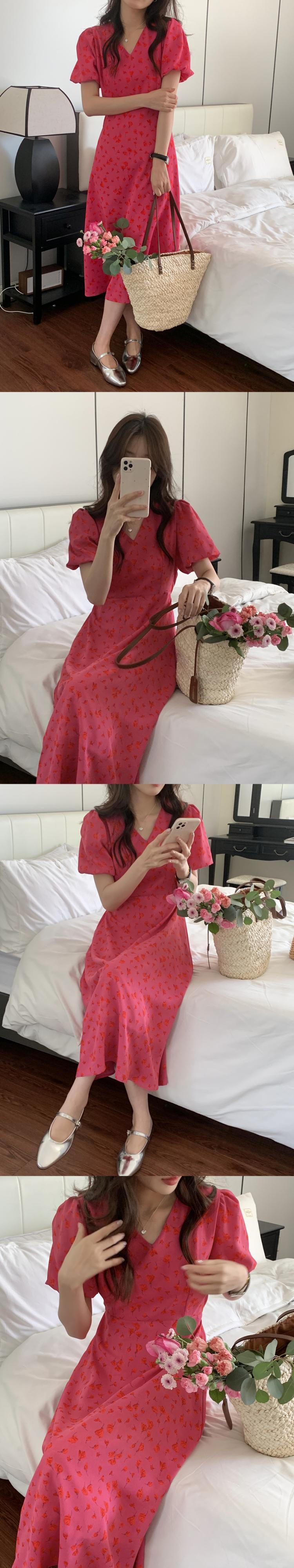 サマーVネックハイウェスト薄手フローラルスリーブドレス ロングスカート レディース 夏物 花柄 7/20 mi4670344057514