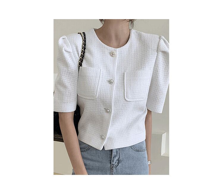 サマーラウンドネックパールポケットツィードジャケット 夏物 Oネック 真珠 7/20 mi469451472437