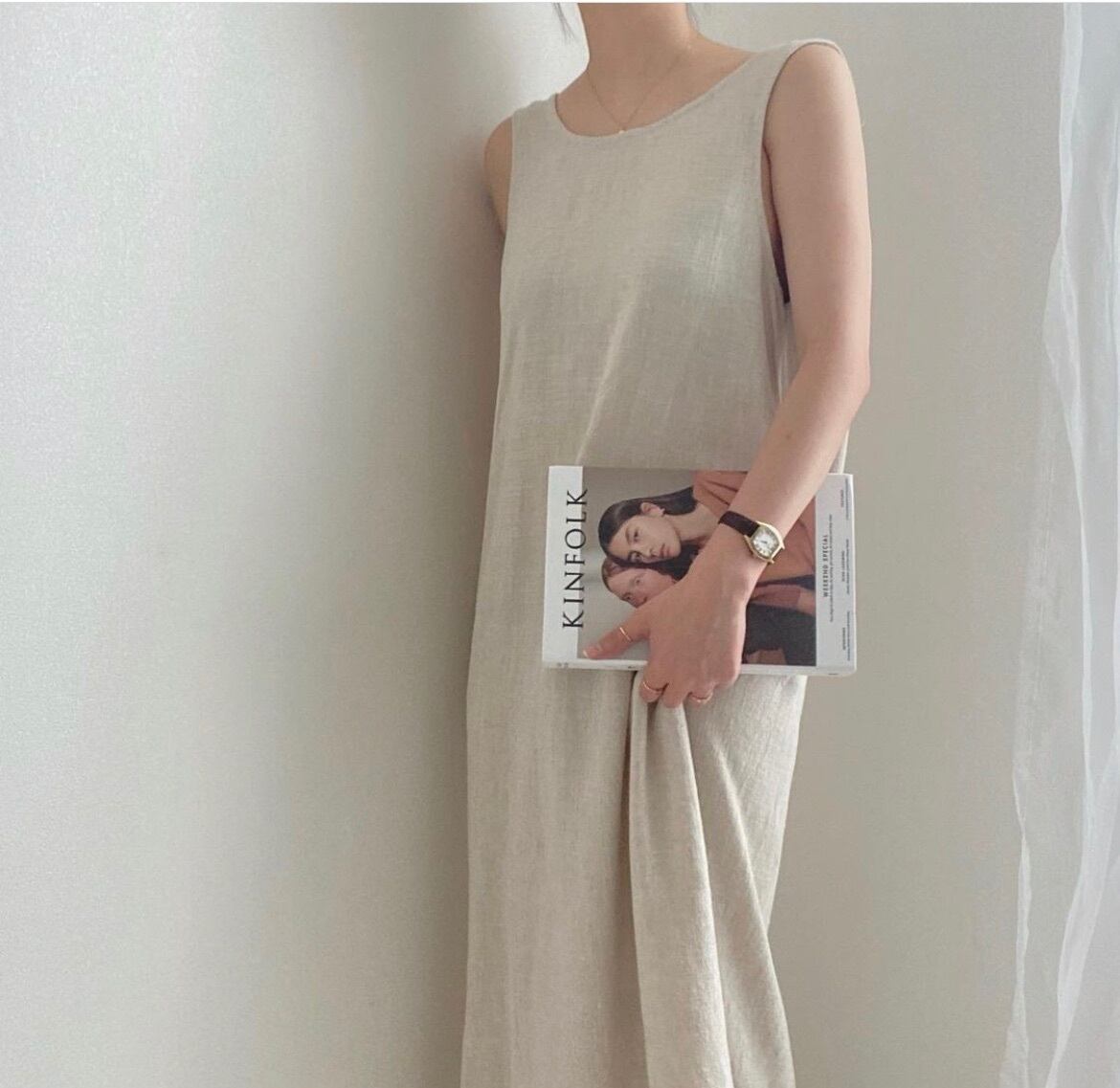 サマーラウンドネックバックギャザールーズロングノースリーブドレス 長袖 夏物 Oネック 7/20 mi4679023140367