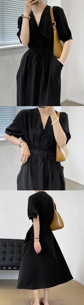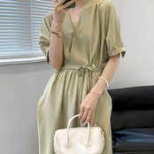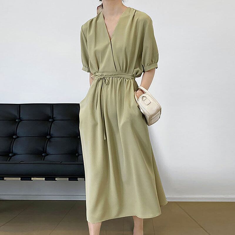 サマークロスVネックストラップ ウェストポケットソリッド カラーロングドレス レディース 夏物 ソリッドカラー 7/20 mi468088108668