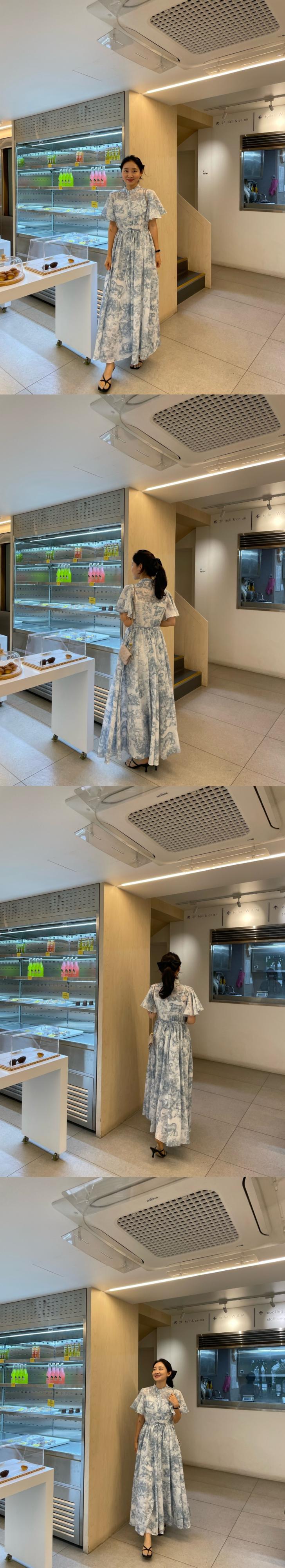 サマースタンダードスタンドカラーカラーギャザースリーブシフォンドレス ロングスカート レトロ 夏物 7/20 mi465783012677