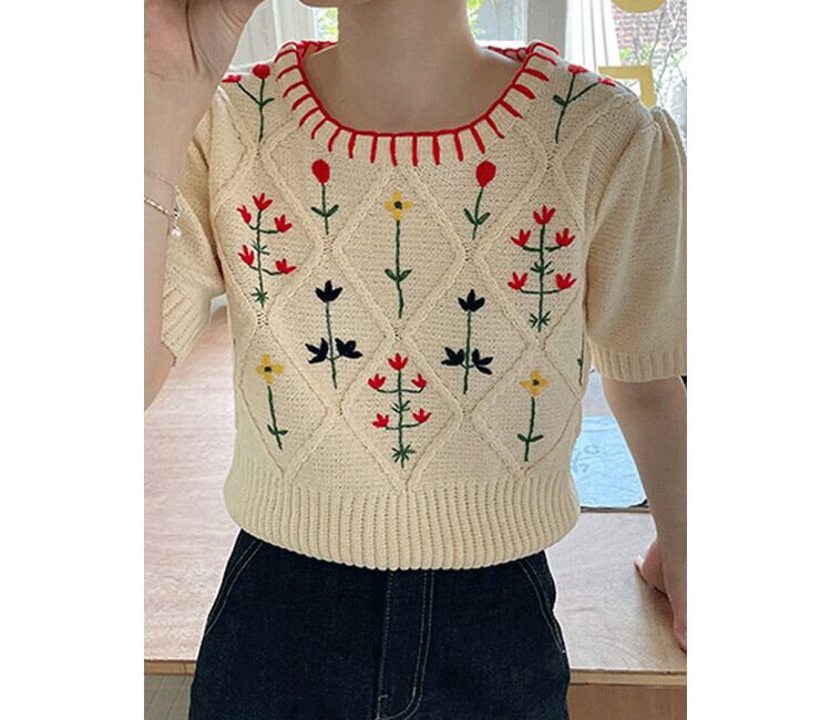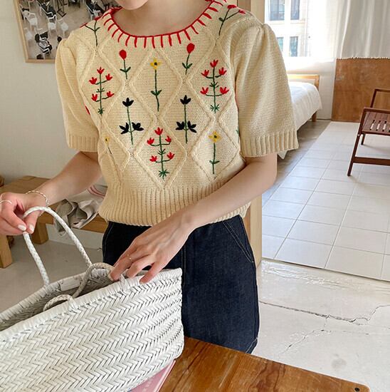イエローラウンドネックカラージャカードプルオーバー セーター トップス レディース Oネック 7/20 mi4672750748302