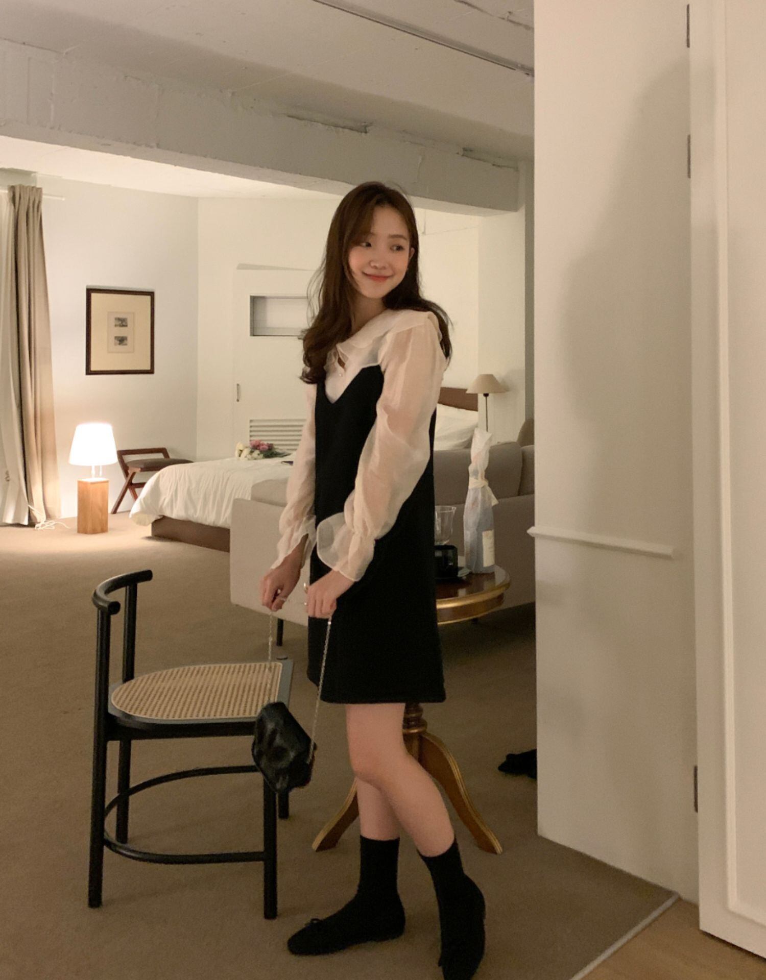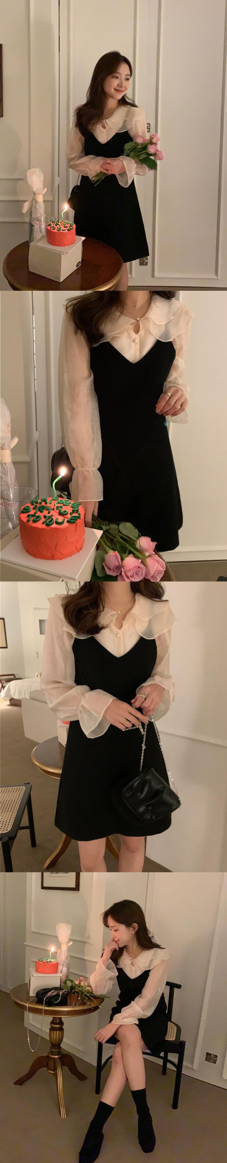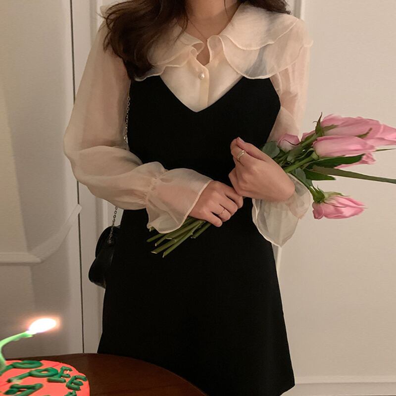 スプリングカラースリーブシャツ Vネックノースリーブドレス 春物 7/20 mi4648570104972