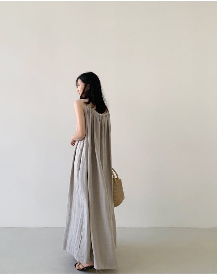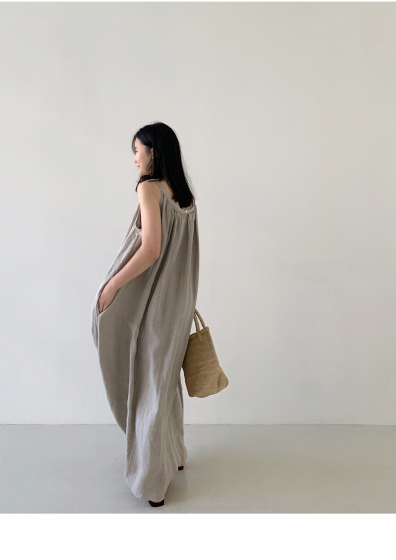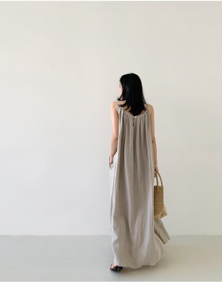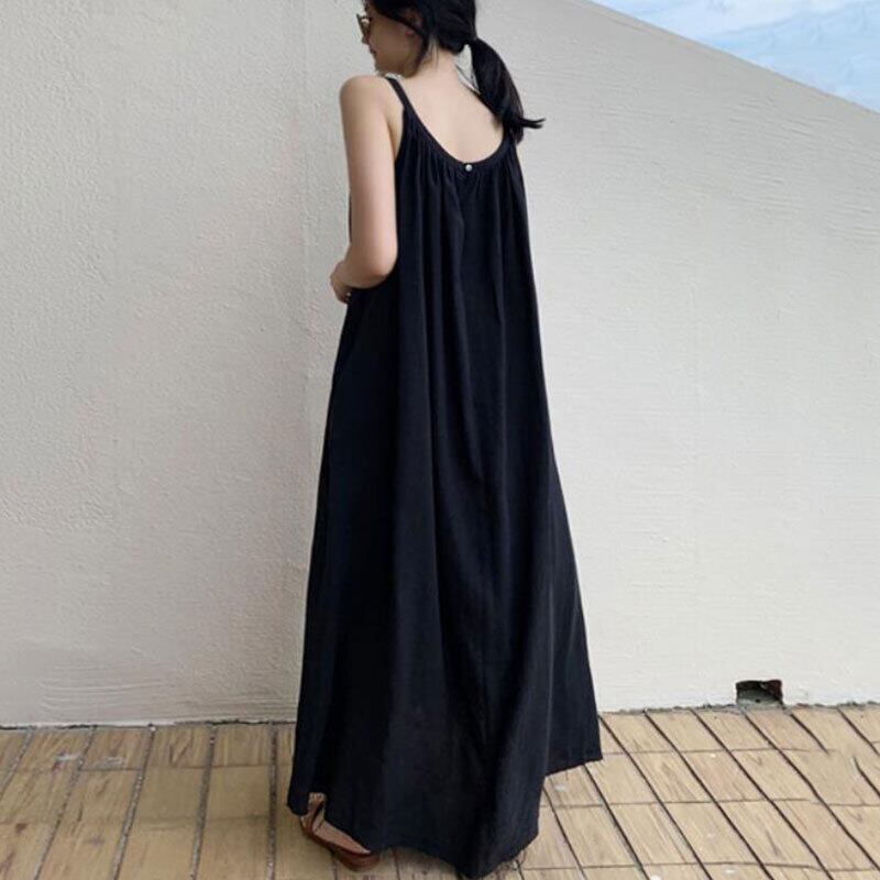 サマースタンダードラウンドネックバックルーズカジュアルノースリーブドレス ロングスカート レディース レトロ 夏物 Oネック 7/20 mi4688064255510