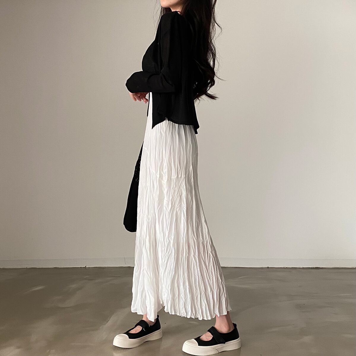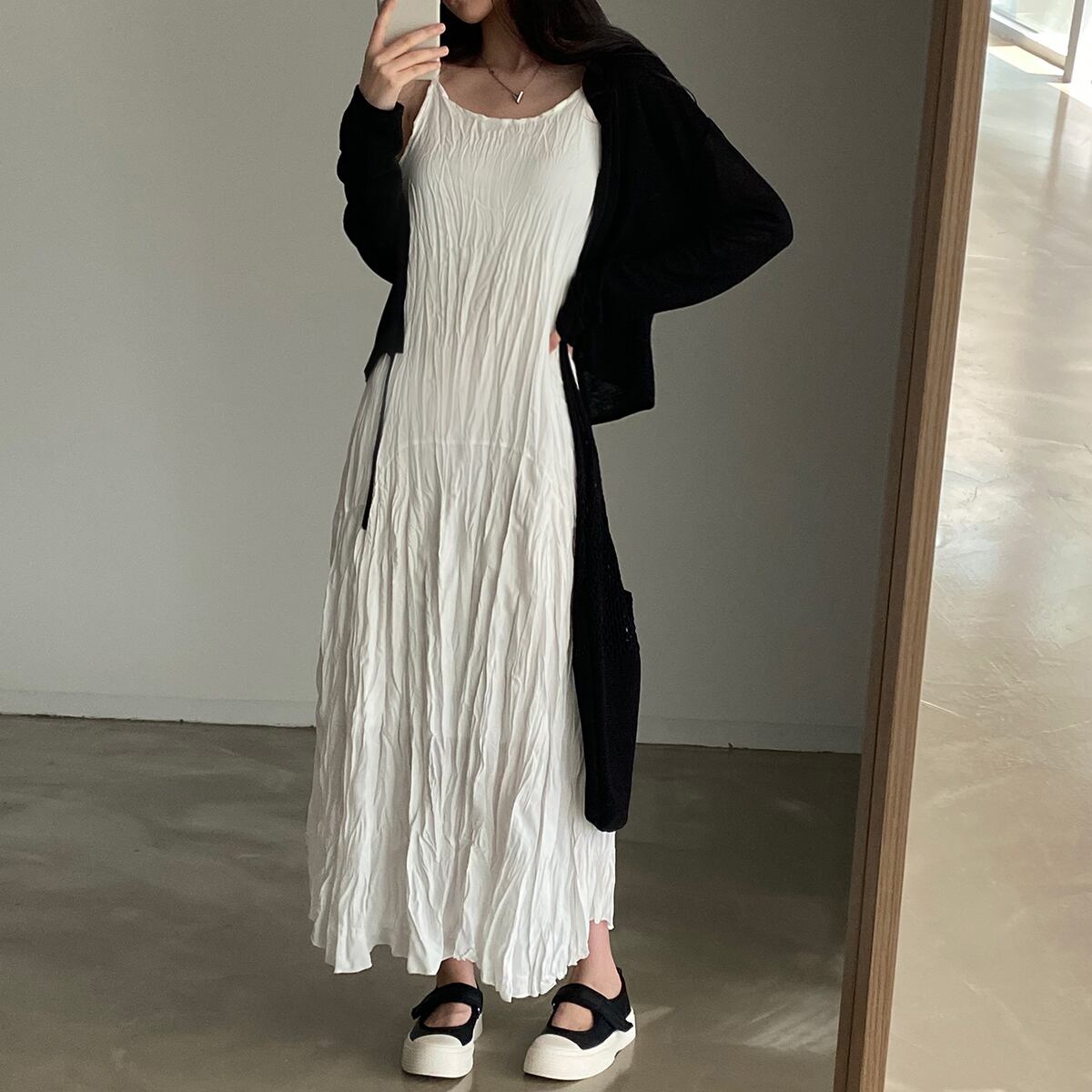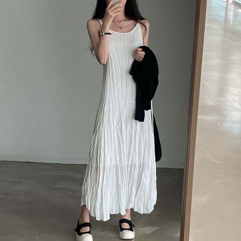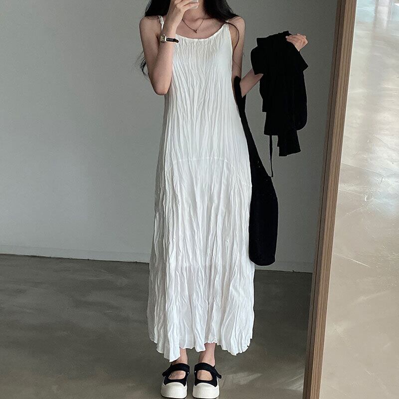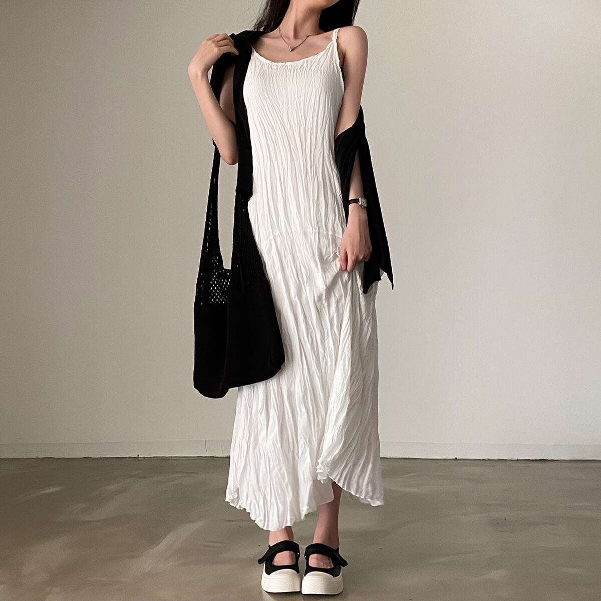 サマーラウンドネックプリーツルーズカジュアルノースリーブドレス ロングスカート 夏物 Oネック 7/20 mi4691398167314