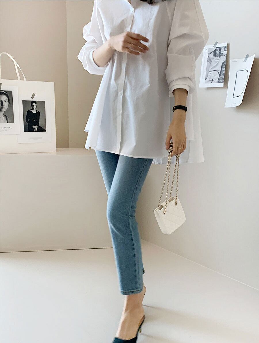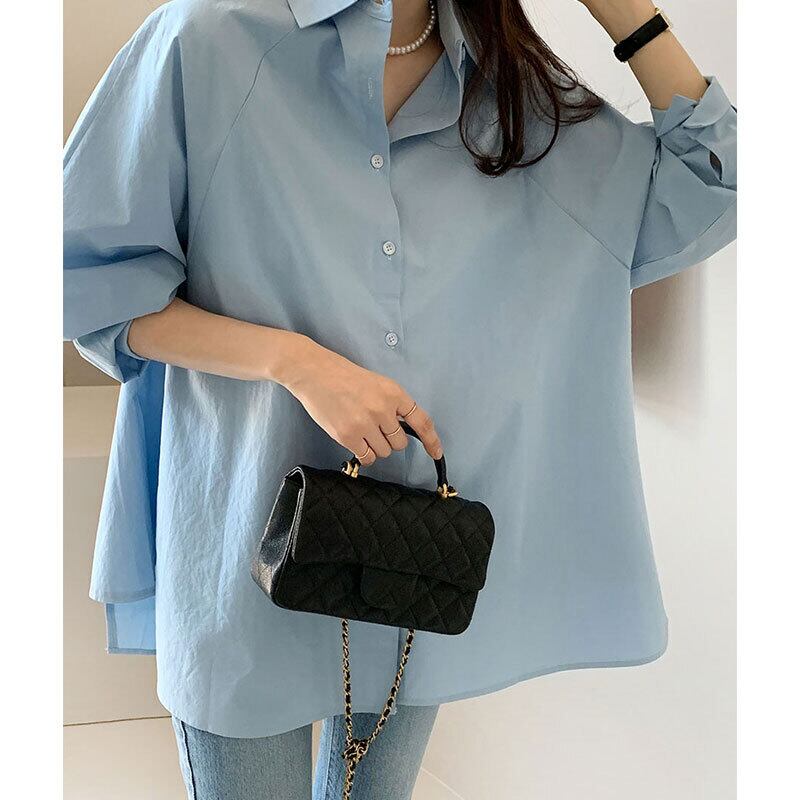 オータムスタイルルーズカジュアルサイドスリットシャツ トップス レディース ロング 秋物 7/20 mi464948277842