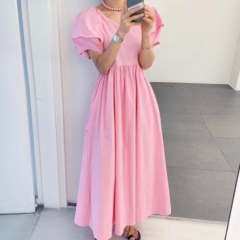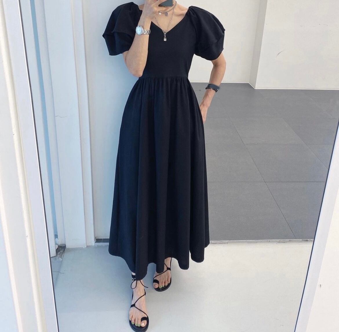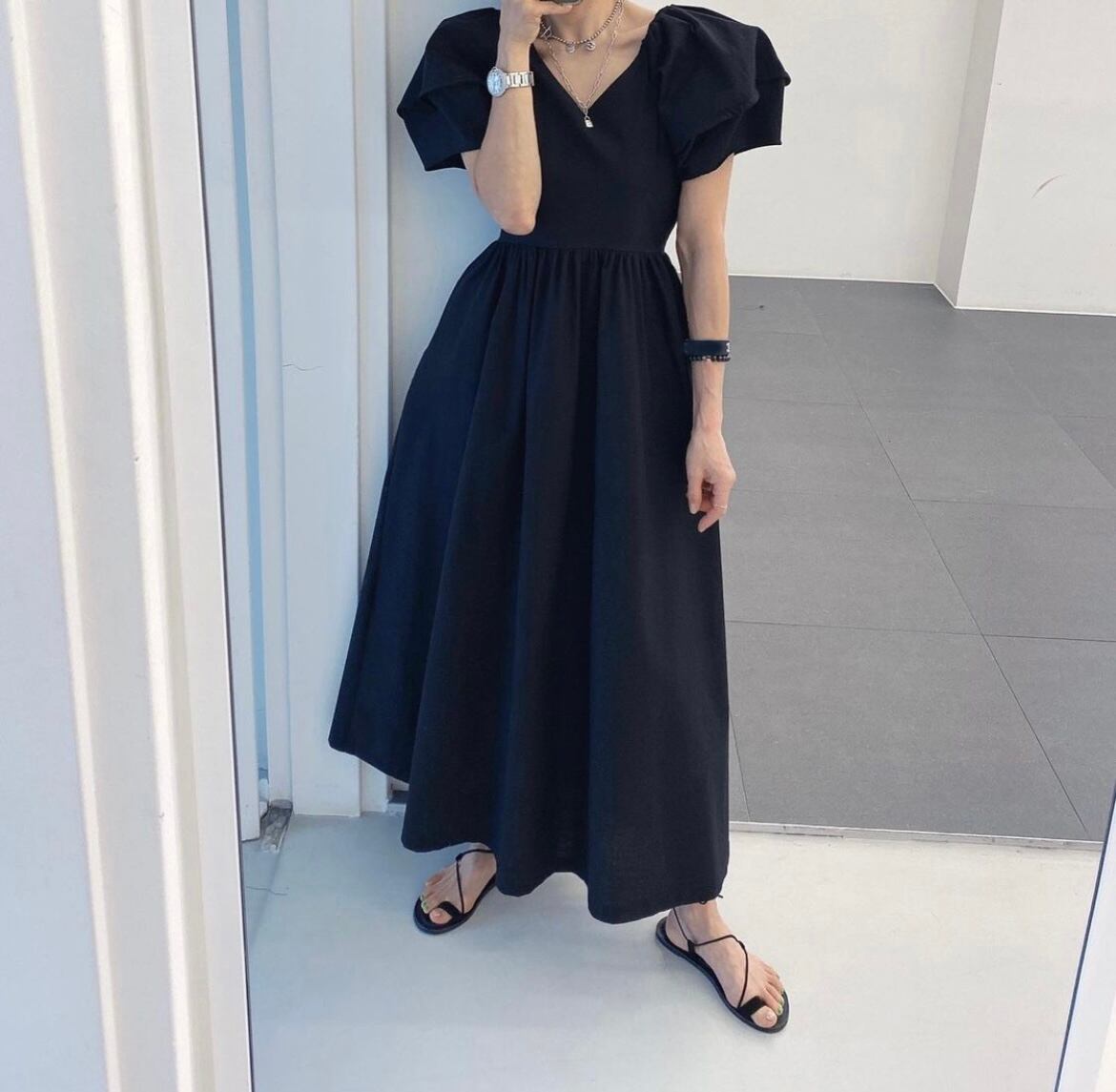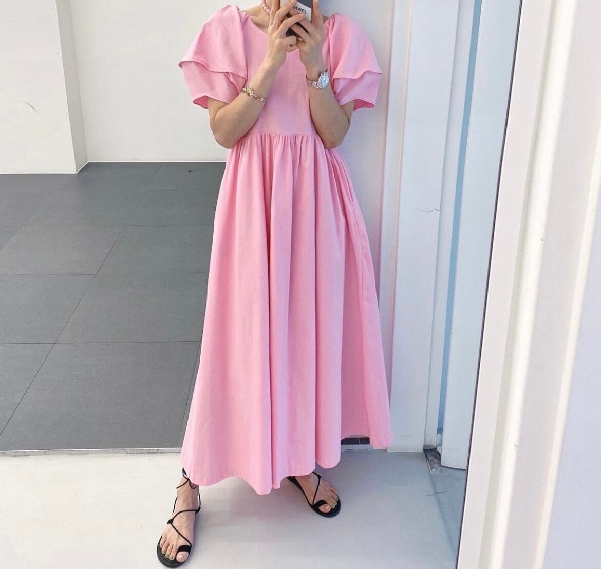 サマースタンダードVネックプリーツウェストポケットドレス レトロ 夏物 7/20 mi4684222901607