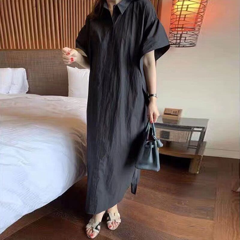 サマーカラールーズロングスリーブドレス レディース エレガント 夏物 ステッチ 7/20 mi467043364998