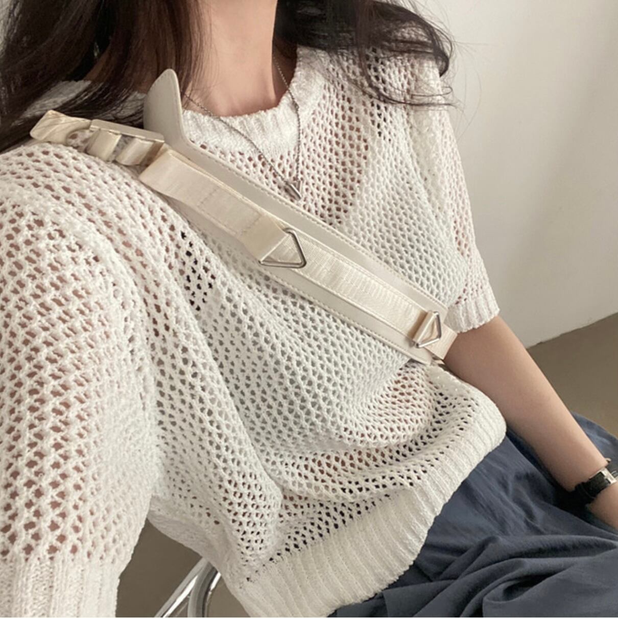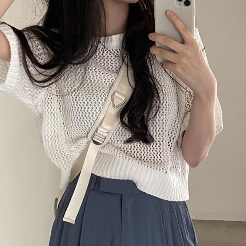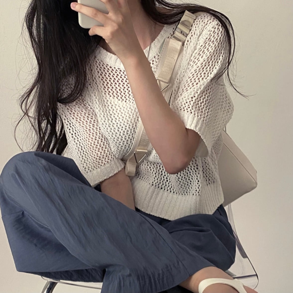 サマーラウンドネックメッシュルーズカジュアルセーター レディース 夏物 Oネック 7/20 mi4627087206287
