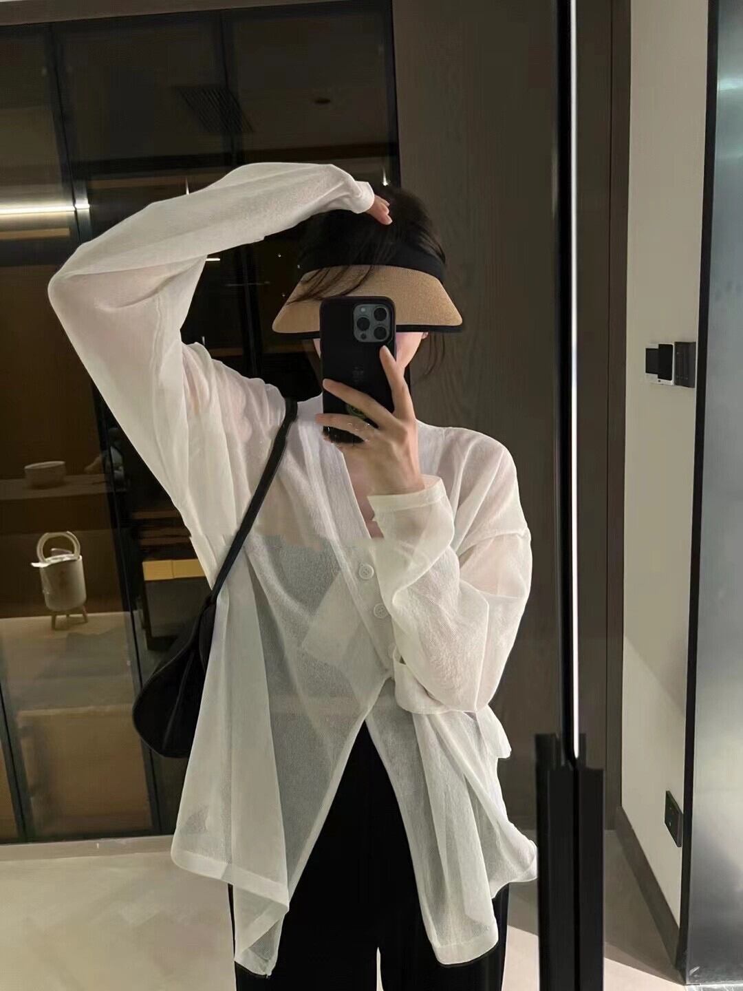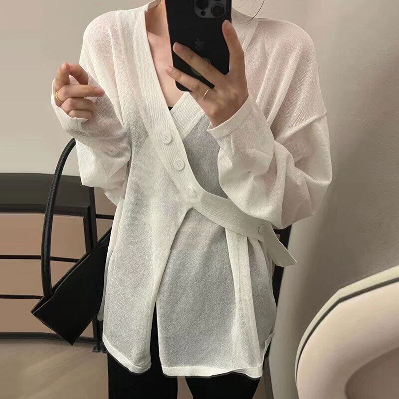 サマークロスVネックシャツ ルーズニットカーディガントップス ロング 夏物 7/20 mi467463364682
