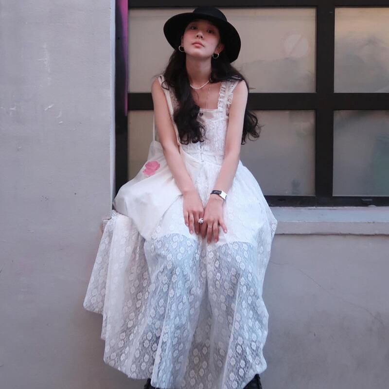 サマーカラーレースFlowerデザイン ロングノースリーブドレス 長袖 夏物 フラワーデザイン スクウェア 7/20 mi4617095677857