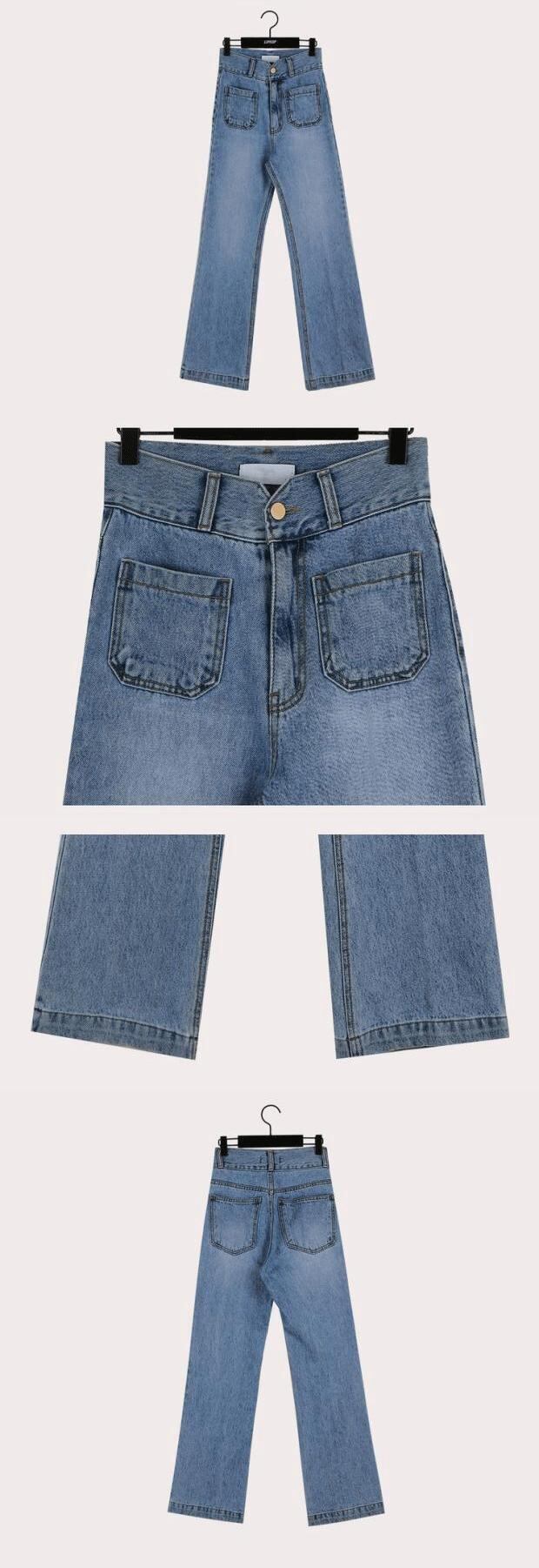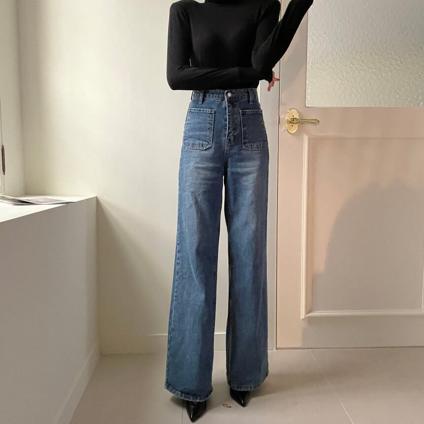 カジュアルハイウェストウェストボタンダブルポケットワイドレッグジーンズ レディース ワイドパンツ 7/20 mi4650856140969