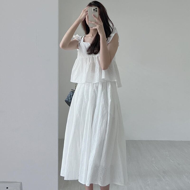 サマーカラーショートトップス ハイウェストウェストスリムスカート レディース レッド 刺繍 夏物 フラワーデザイン スクウェア 7/20 mi469391450421