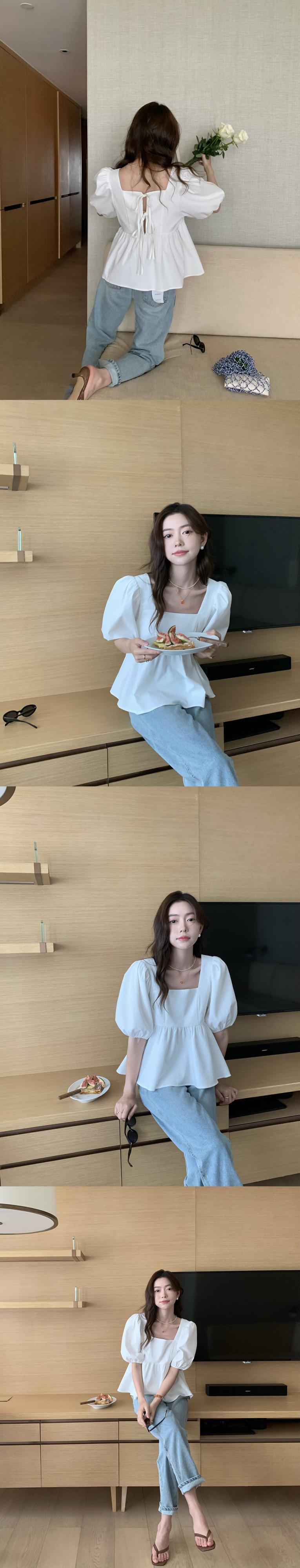 サマースタンダードカラーバックストラップ ルーズシャツ レディース レトロ 夏物 スクウェア 7/20 mi4651836242382