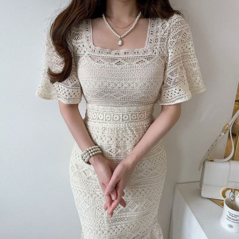 レースFlowerデザイン ドレス ロングスカート レディース エレガント フラワーデザイン スクウェア 7/20 mi4630022883815