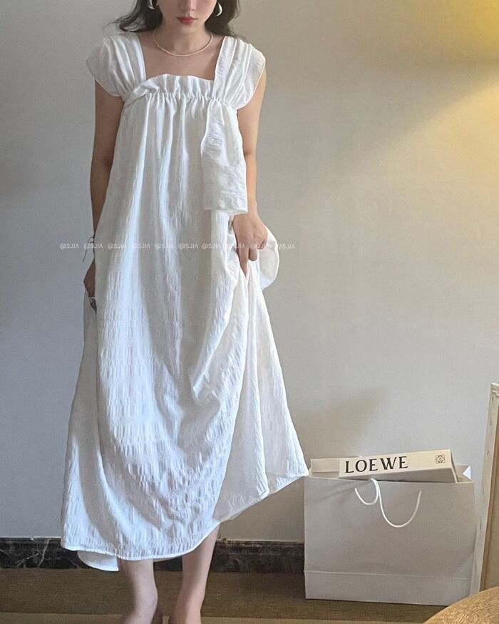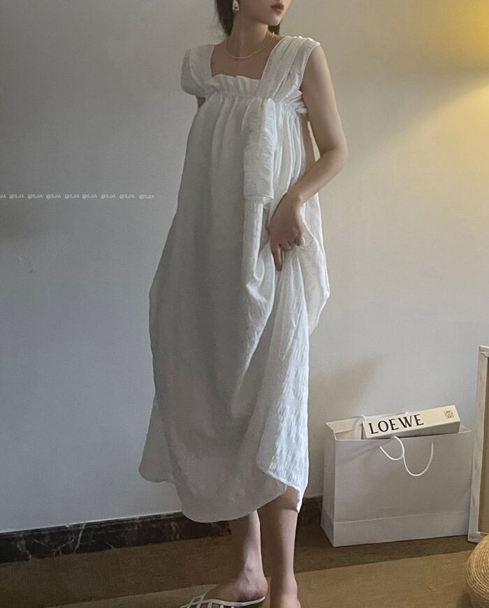 サマードレス ロングスカート 夏物 スクウェア ステッチ 7/20 mi4671460734752