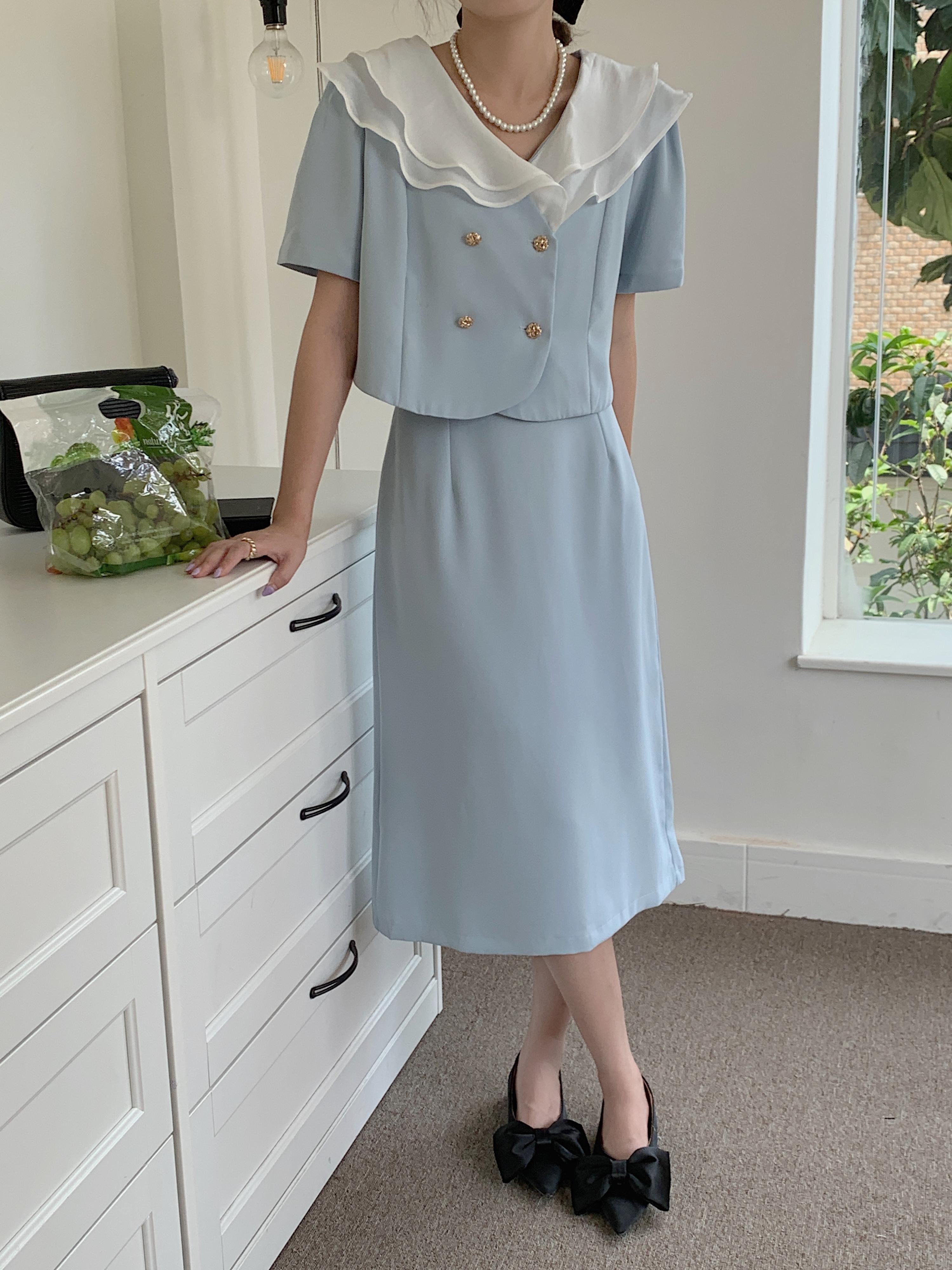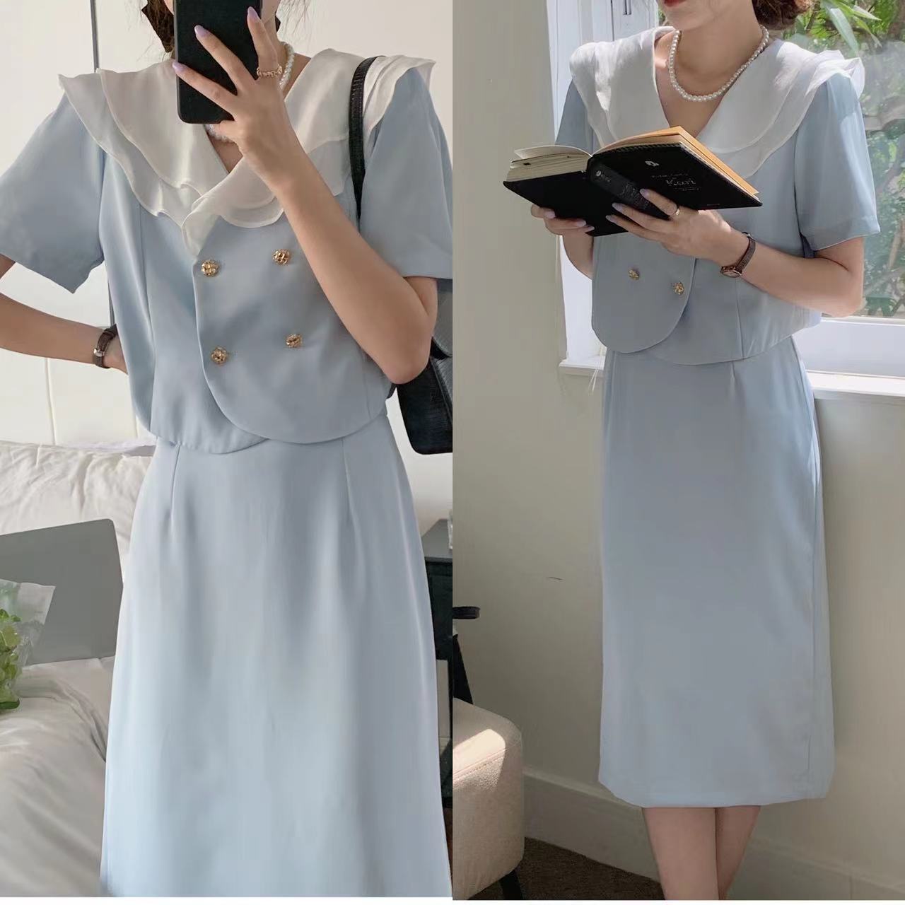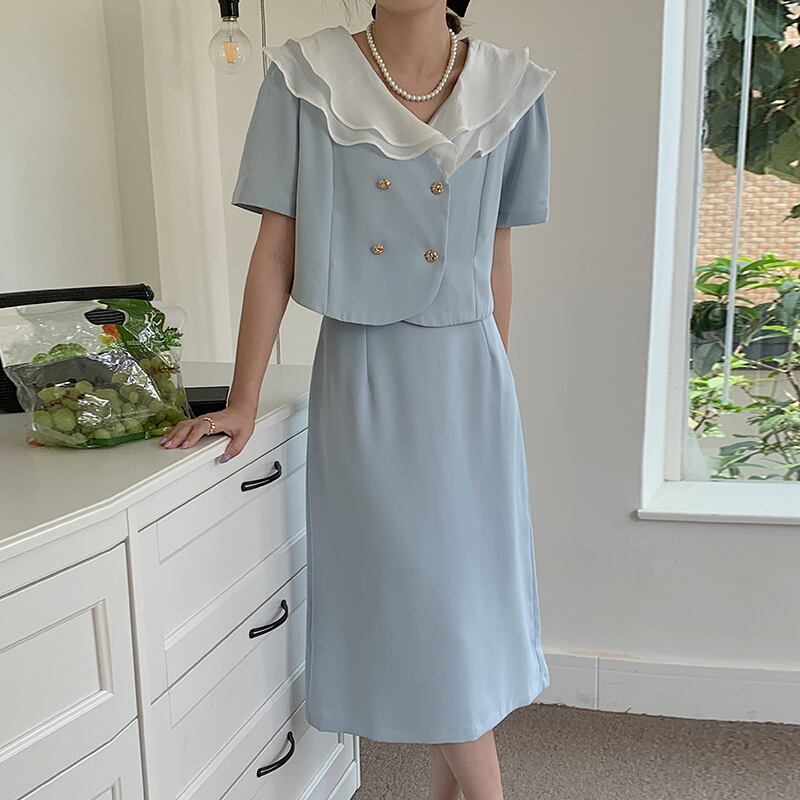サマーダブルボタンショートトップス ハイウェストウェストスカート 夏物 7/20 mi4652690672519