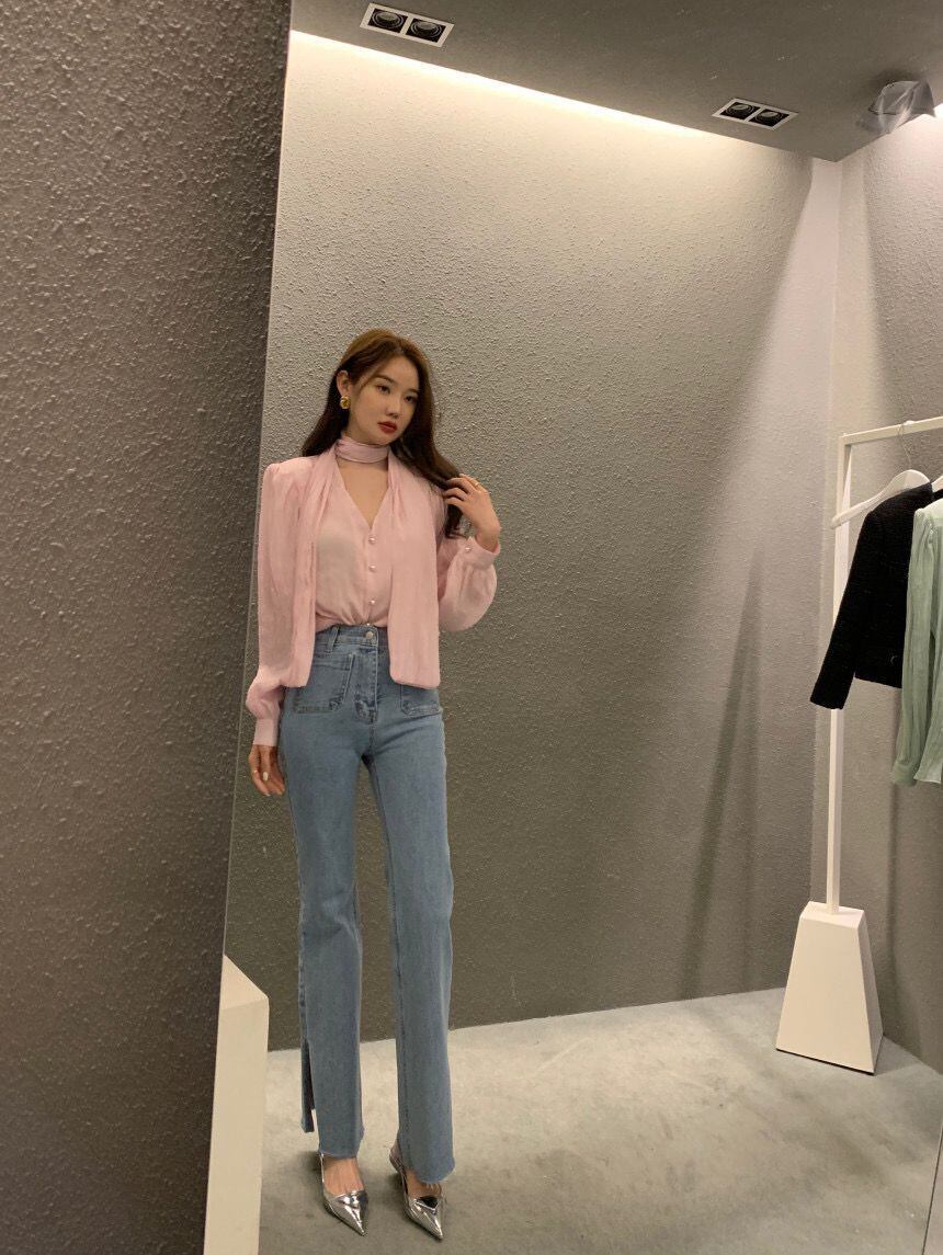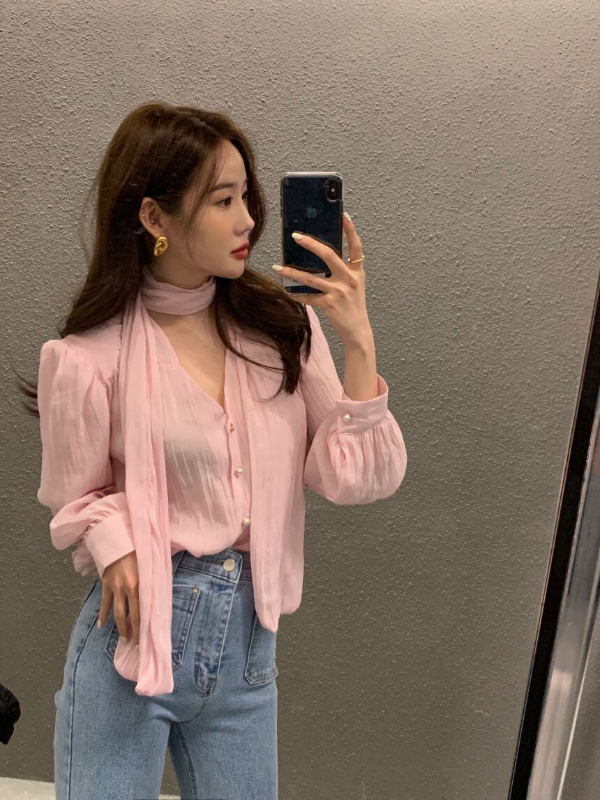 スプリングVネックプリーツルーズシャツ トップス ロング 春物 7/20 mi4687812606133
