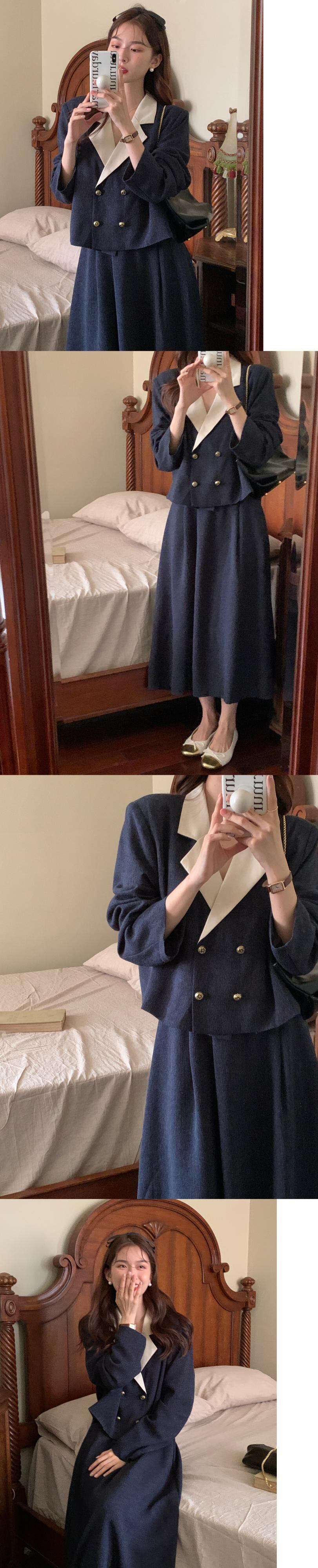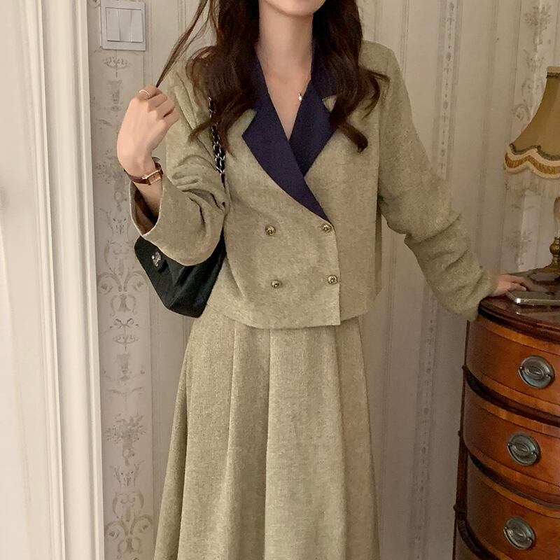 スタンダードカラーダブルブレストジャケット ハイウェストウェストプリーツスカート レディース ロング レトロ 7/20 mi4662575061399