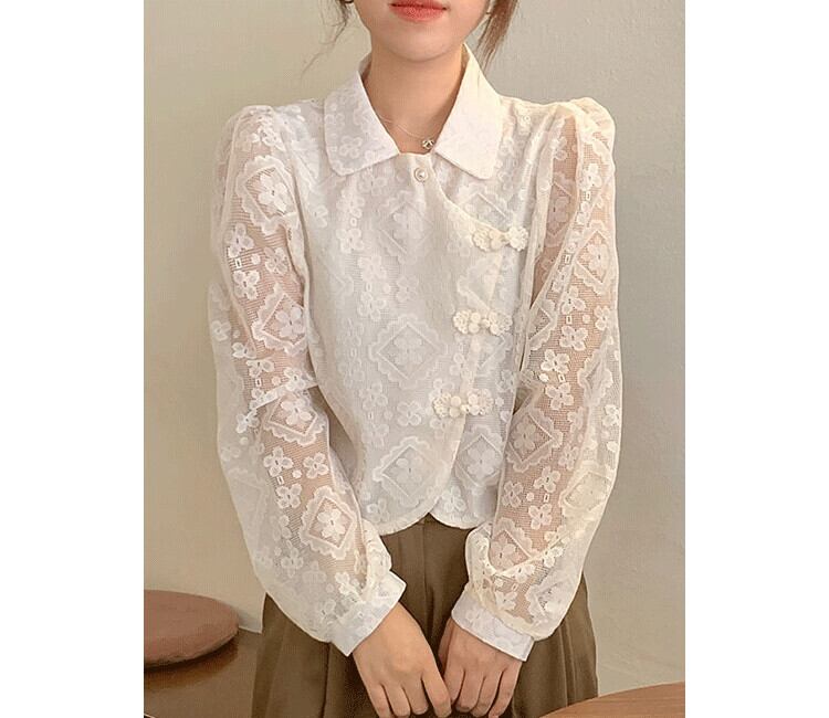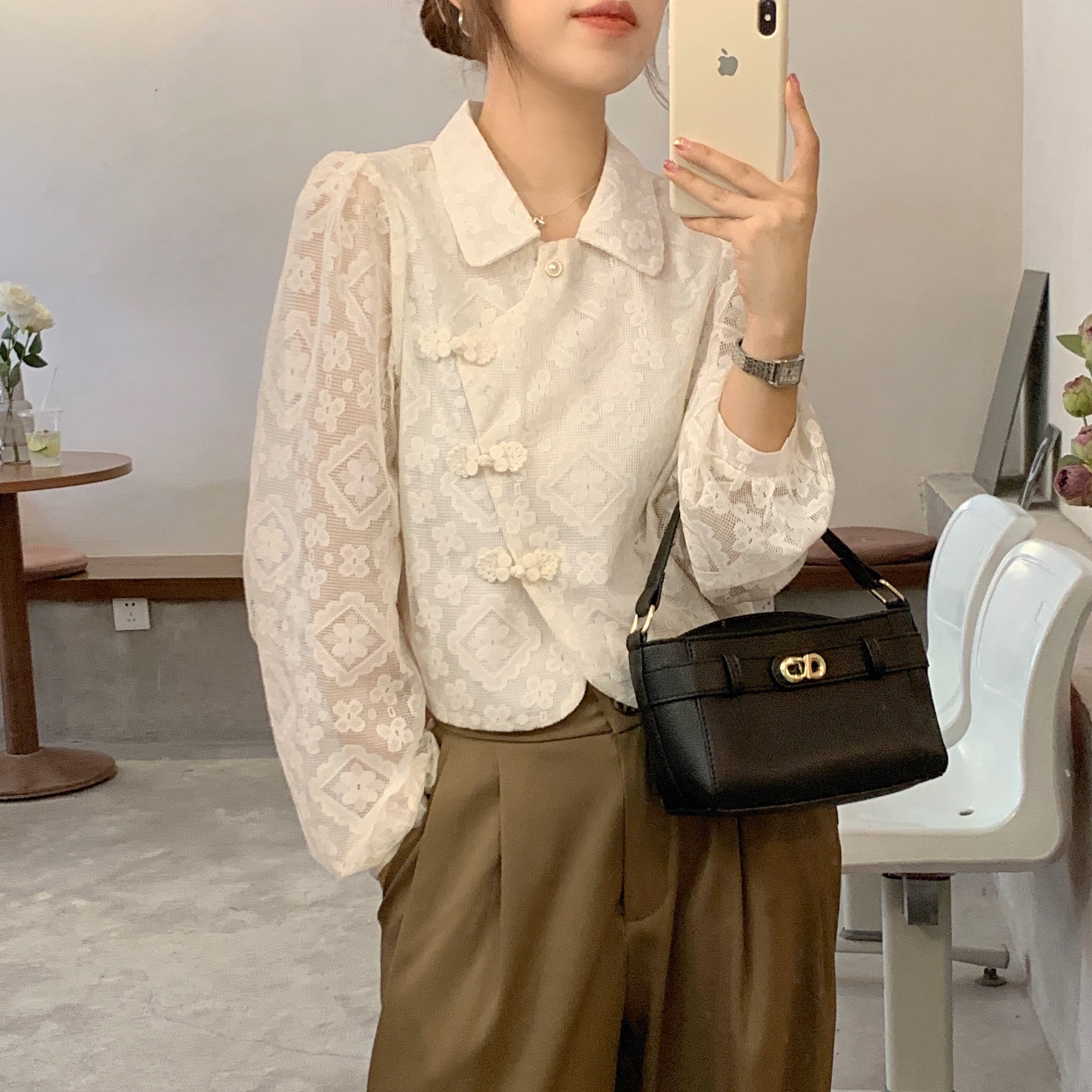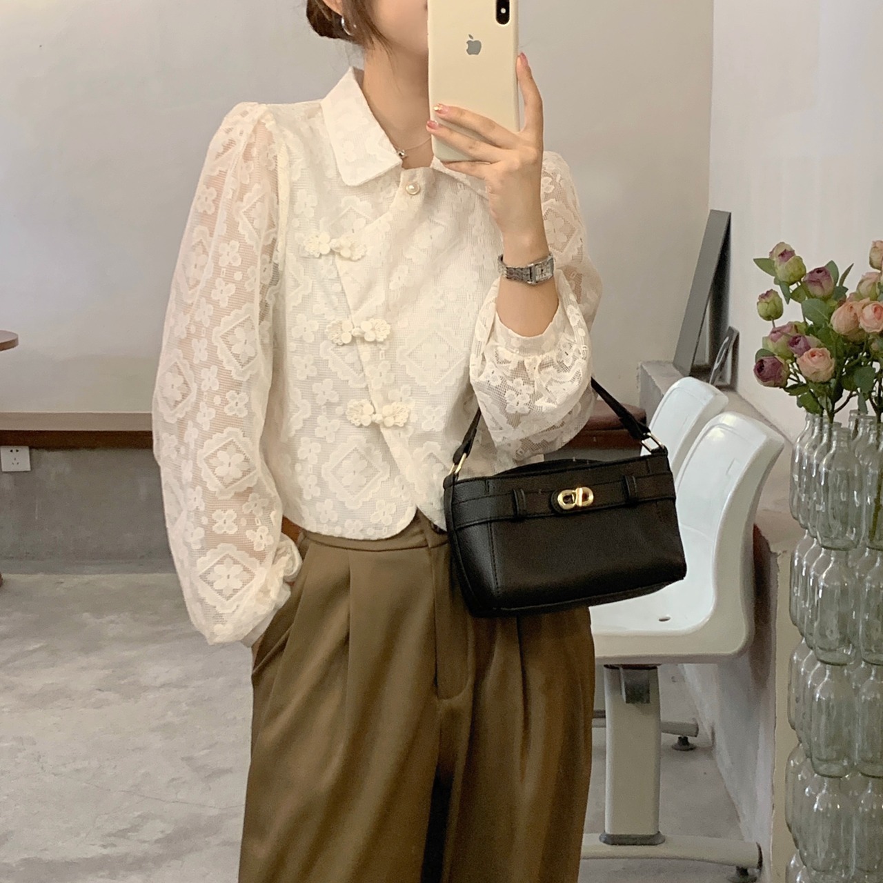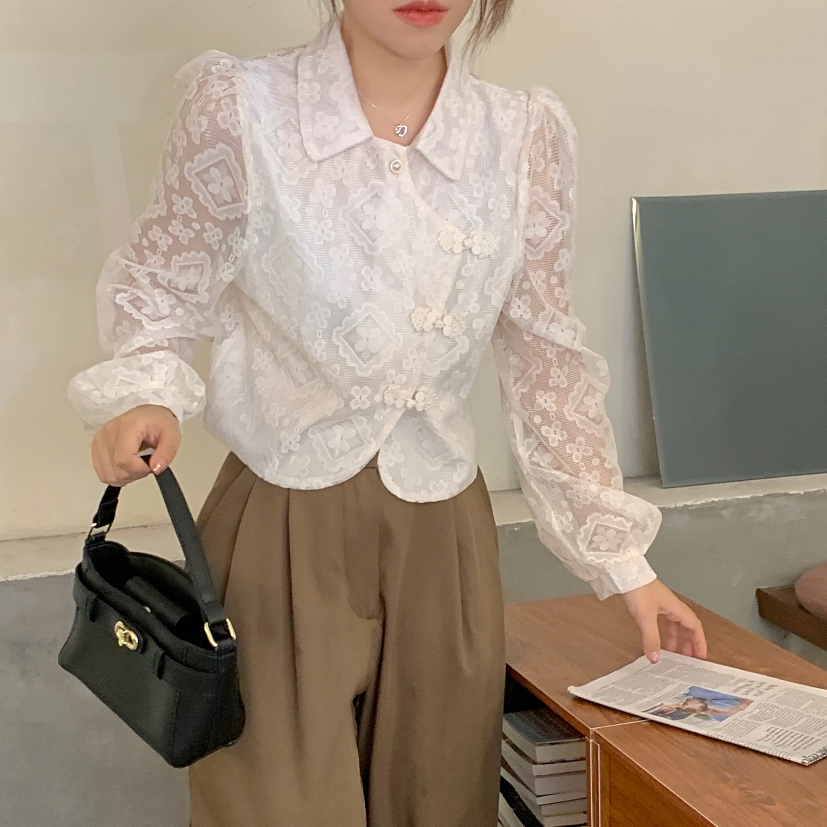 オータムレースFlowerデザイン ボタンルーズシャツ トップス ロング 秋物 フラワーデザイン 7/20 mi4622677511653