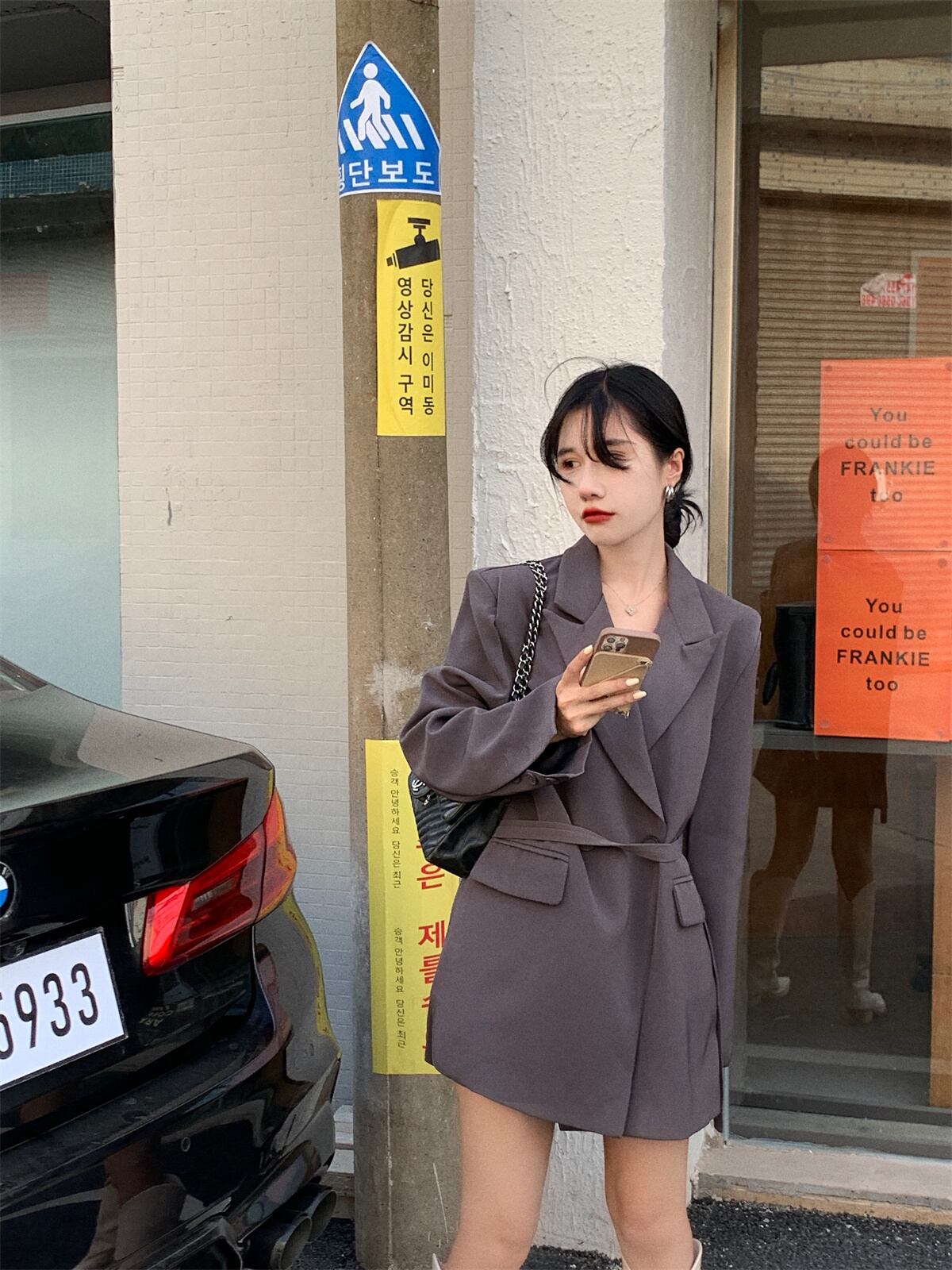 オータムスタンダードカラーダブルブレストウェストルーズジャケット レディース ロング レトロ 秋物 7/20 mi4679512308002