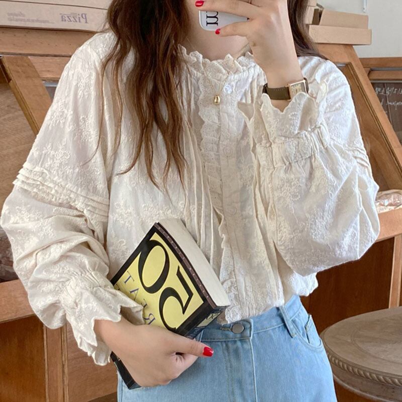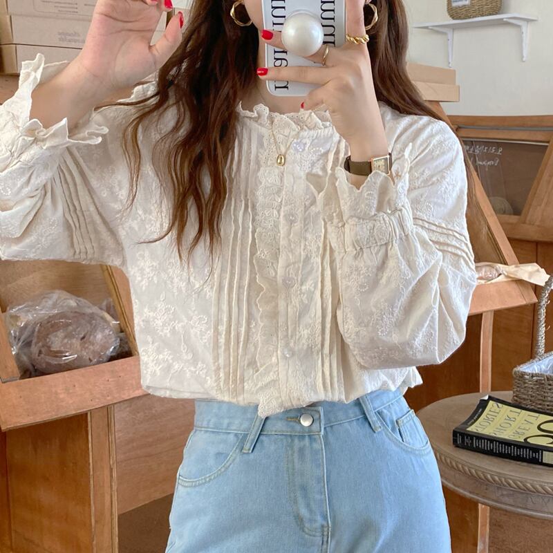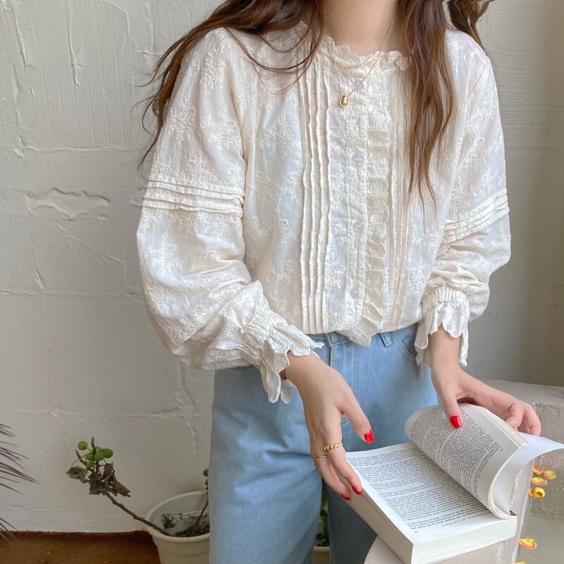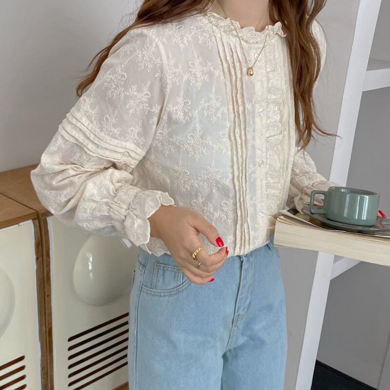 オータムカラーレース刺繍Flowerデザイン シャツ レディース ロング 秋物 フラワーデザイン 7/20 mi4610912684731